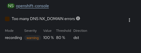 NetObserv shows "Too many DNS NX_DOMAIN errors" on namespace openshift-console