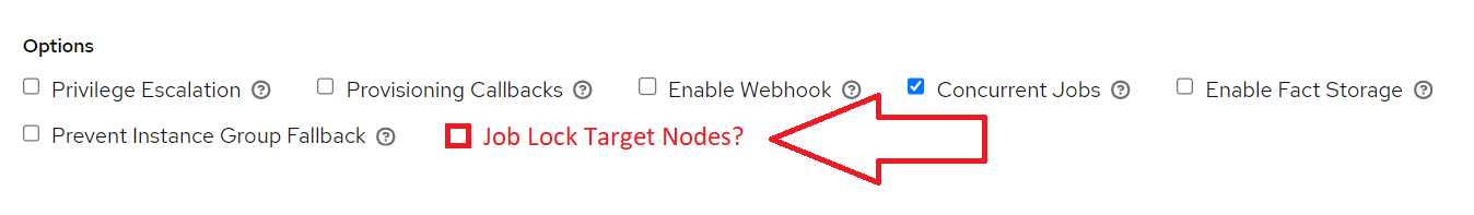 When a template with this option runs, the job runs a "while true loop" process on the target nodes. When the job is done the process ends. Any job triggered by AAP first looks for this "locked" process, and if found, AAP waits a pre-defined amount of time before starting this job (the value needs to be configurable in the UI).