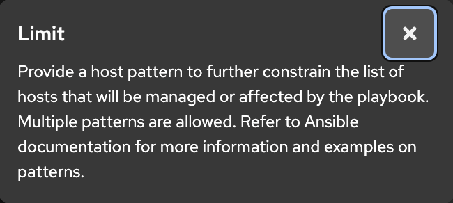 We have a template that uses the --limit parameter (see screenshot) and the end user wants to rename (or at least modify to provide a hint for the operators) for the target host that the template will take action upon.