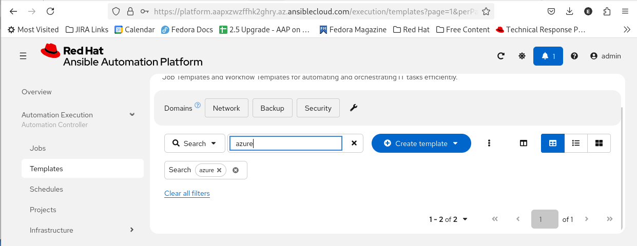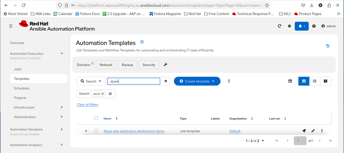 - The customer frequently searches for job templates to run automation workflows.