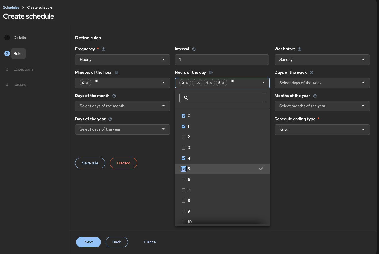 The aim is to suspend certain scheduled jobs in defined time windows. For complete weekdays, this can be set via the AAP GUI, but there is no configuration option to set time windows within a day. For example, a job should not be executed in the time window of the data backup.