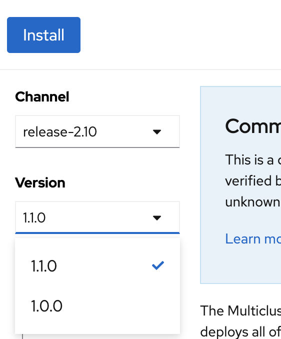 • 1.1.0 operator can be installed (tag: 1.1.0)