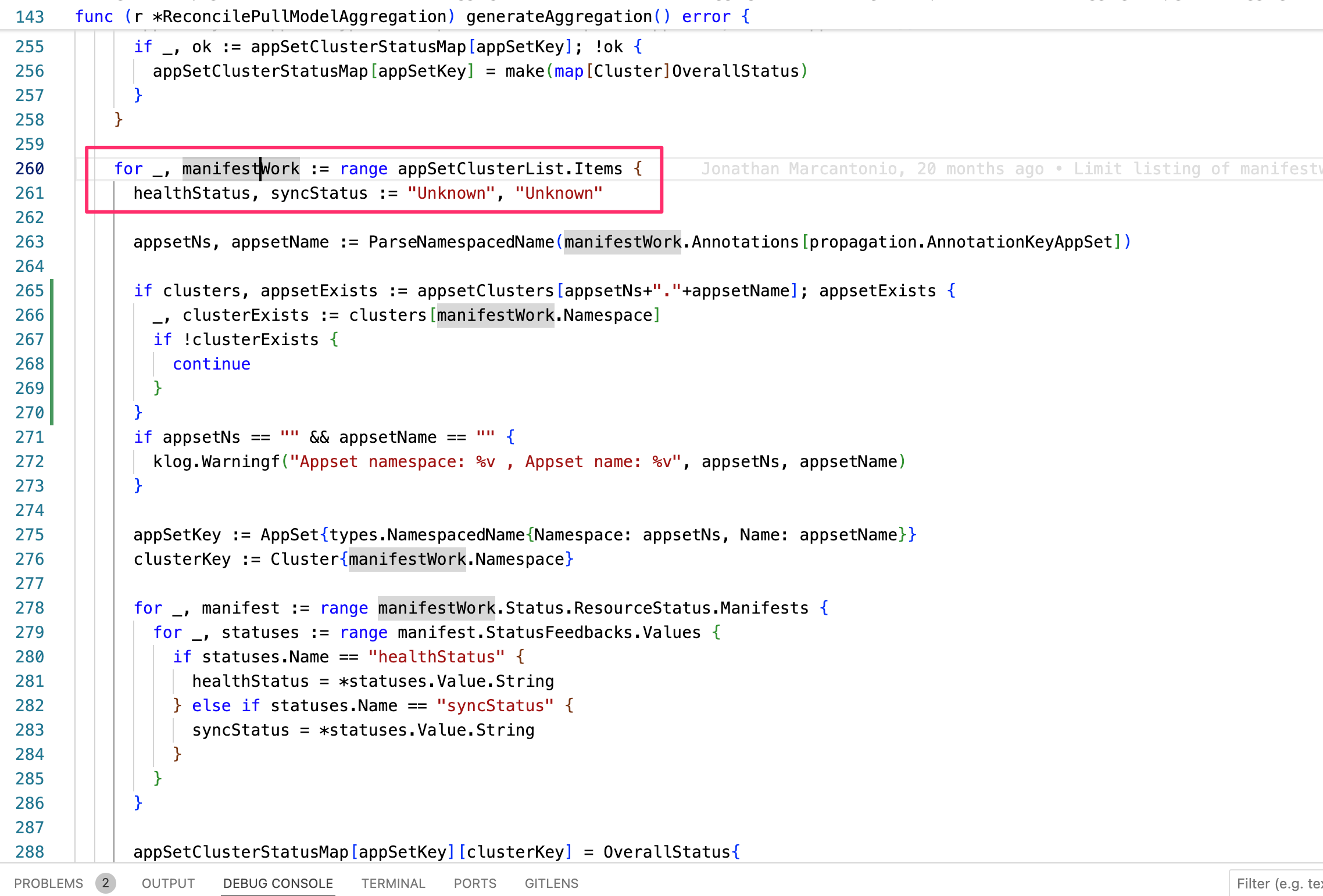 The manifestwork may be listed in this order so at the end of the loop feng-mort-pull-feng-mc3-d335e's status will be used but from the timestamp feng-mort-pull-feng-mc3-89ea8 has the latest status.