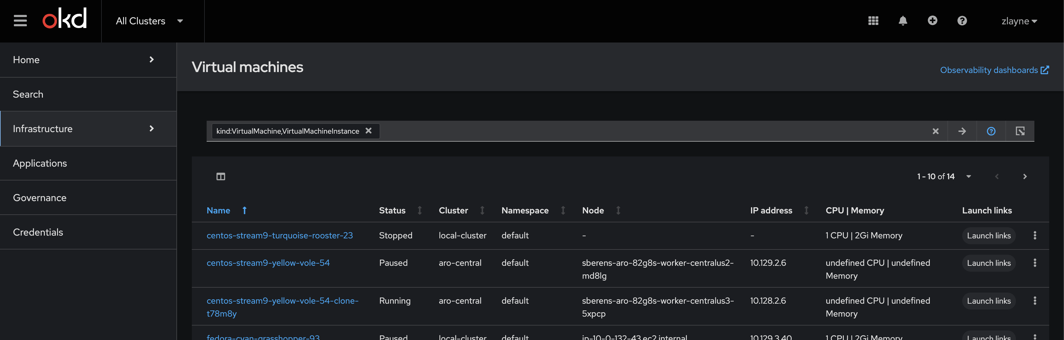 In this context, the ACM Searchbar would work under the assumption `kind:VirtualMachine,VirtualMachineInstance` was already entered. Then the user would be able to select any VM field to filter down the table.