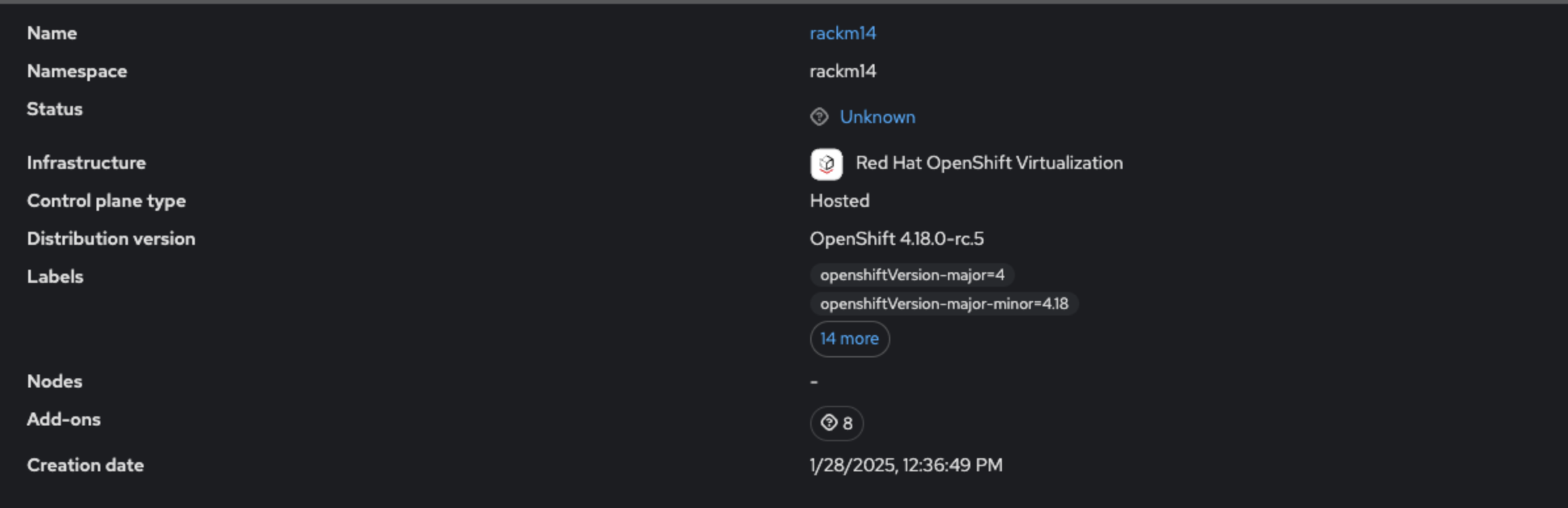 Note: This cluster is a different cluster than where the hcp cluster/acm hub cluster is created.