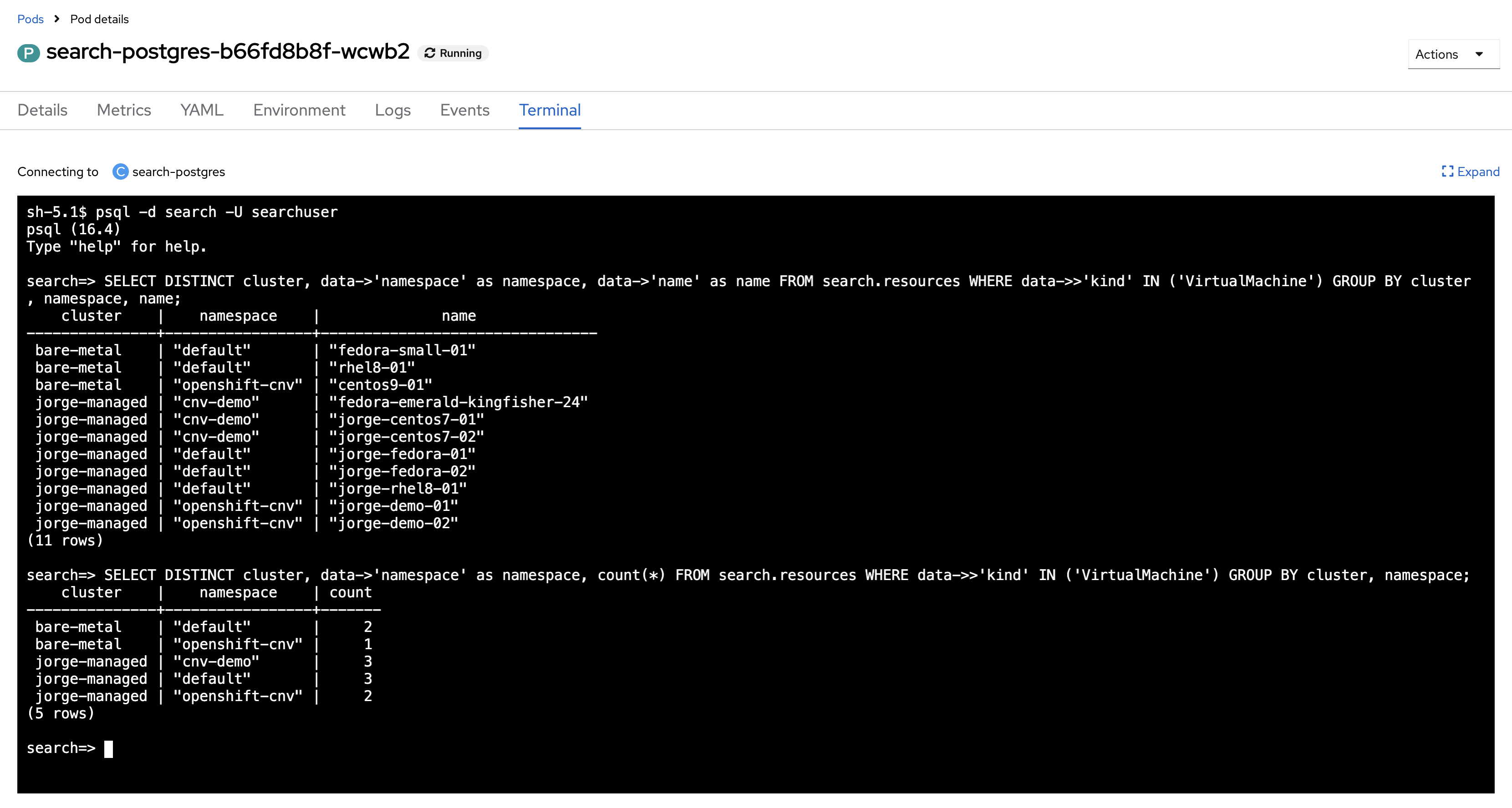 - Prototype tree view displays clusters when used in a multicluster context