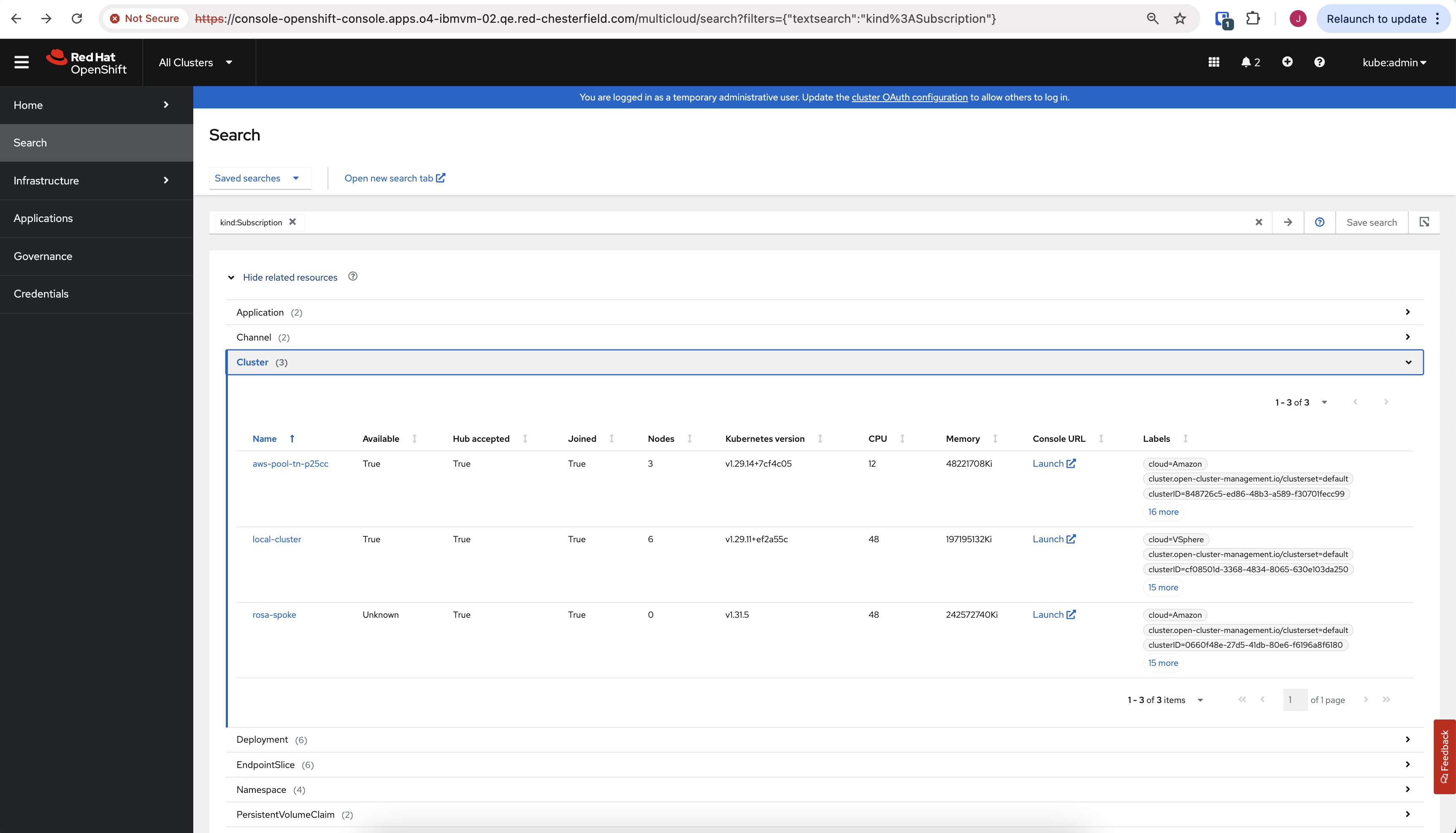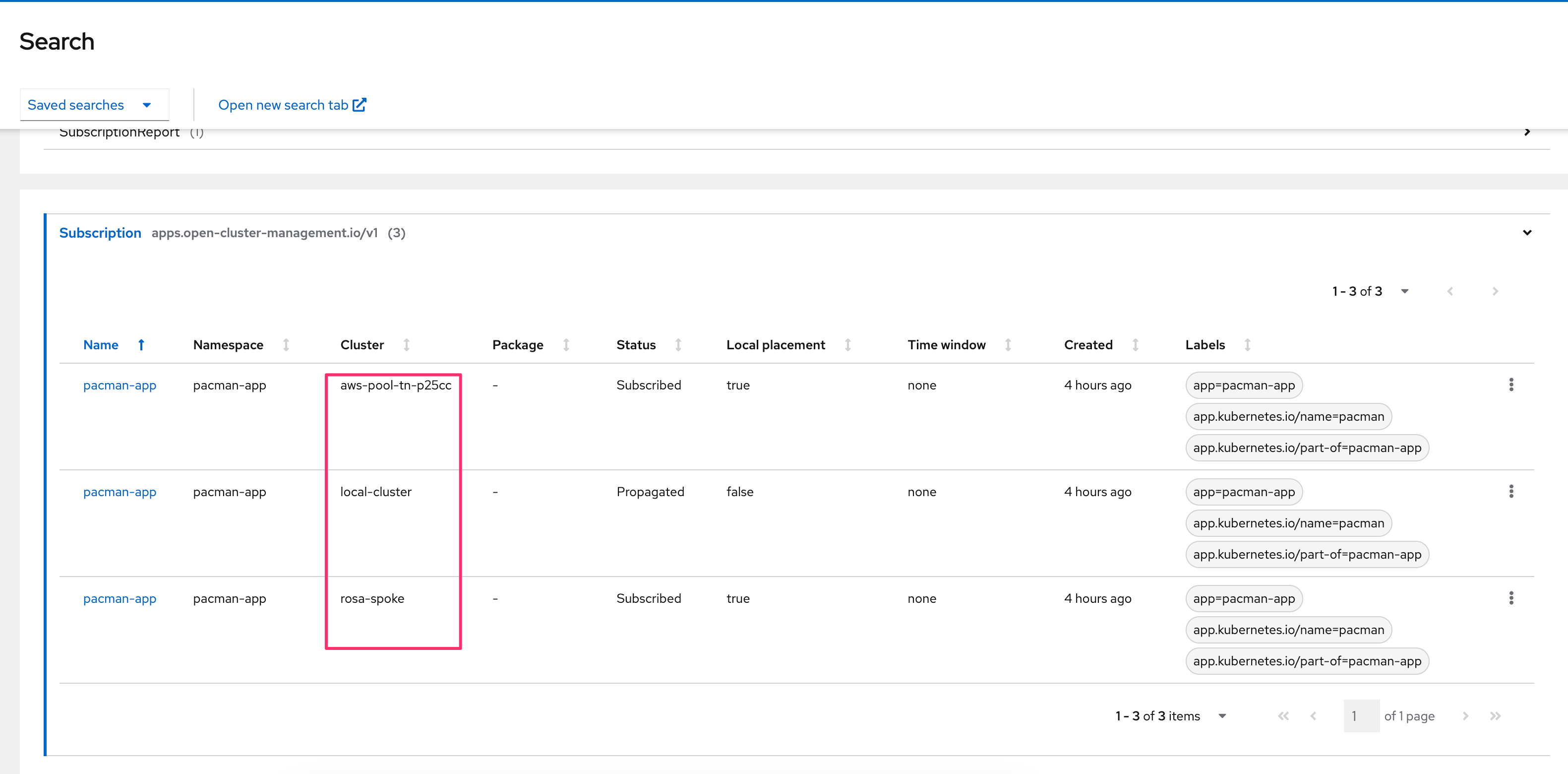 Search not finding all managed clusters as related for Subscription resource