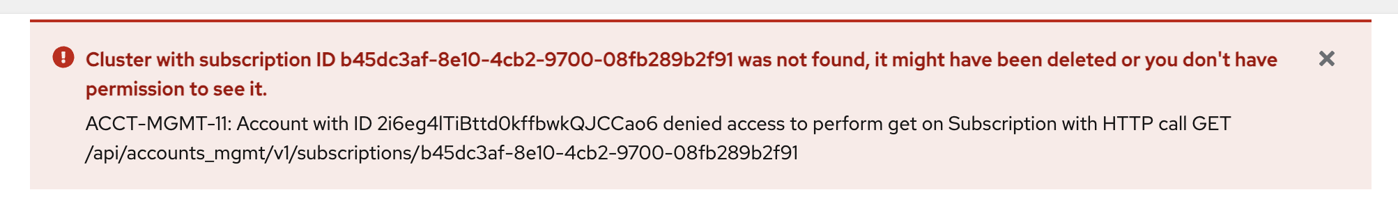 When clicking the OpenShift Cluster Manager link in the Cluster Details Page, the redirected page indicates that the cluster was not found.