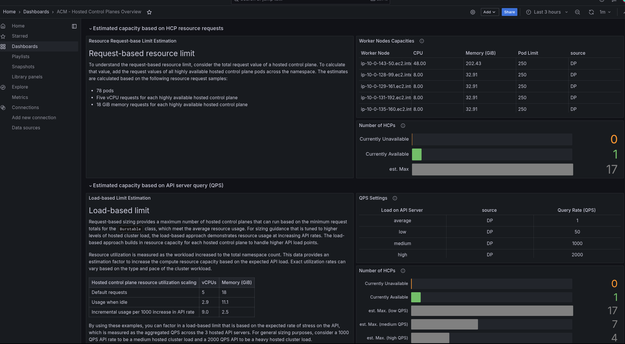 We have great Dashboards for Capacity Planning of Hosted Clusters when using ACM