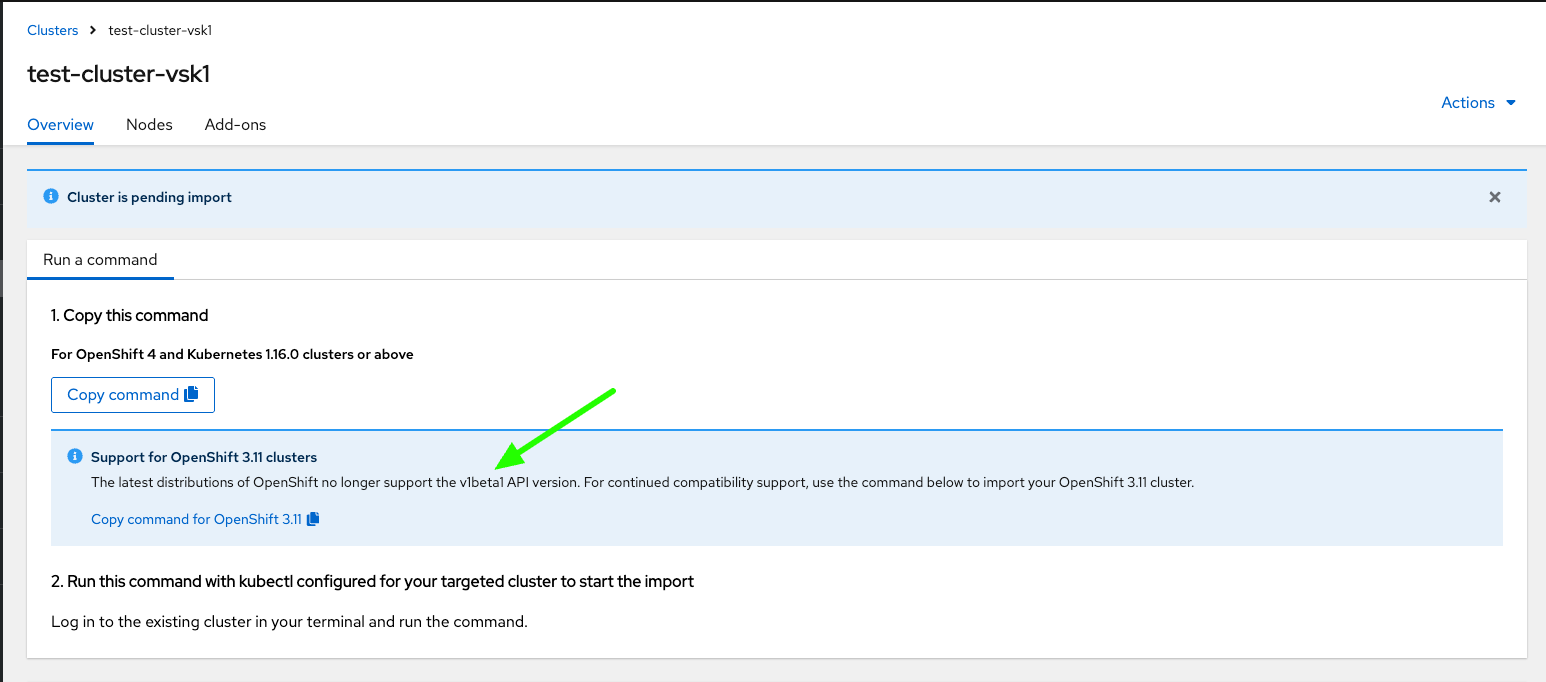 verify success (a command to run or a result to see?)- Console code has no references to Klusterlet v1beta1 API version
