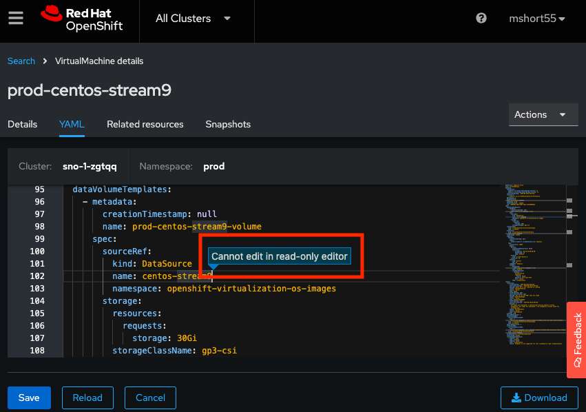 3. try to edit VM or VM snapshot yaml in yaml editor