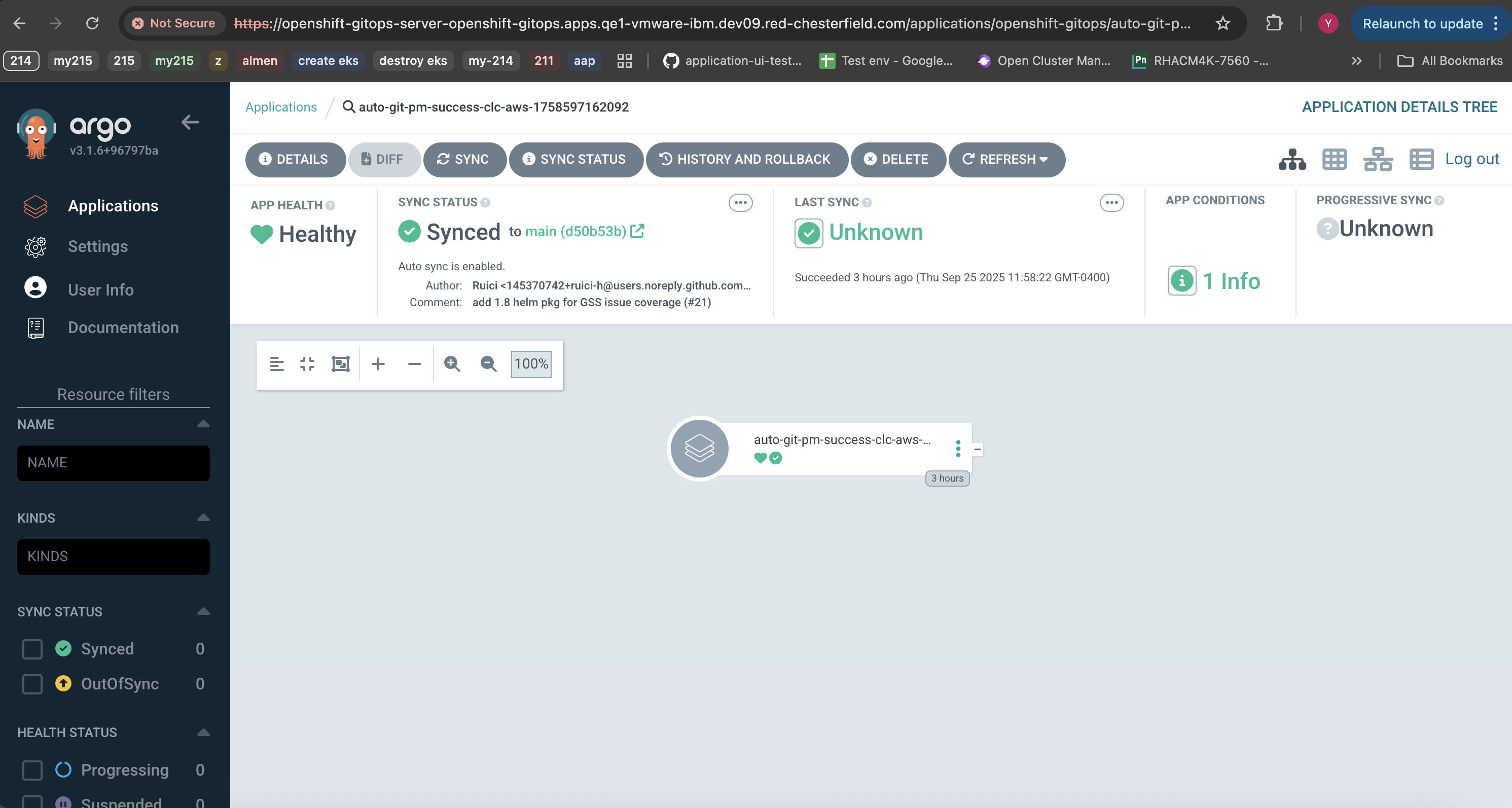 With this fix, Applications now remain stable. The pull-integration-controller clears the refresh annotation to prevent Applications from getting stuck in a perpetual refresh loop.