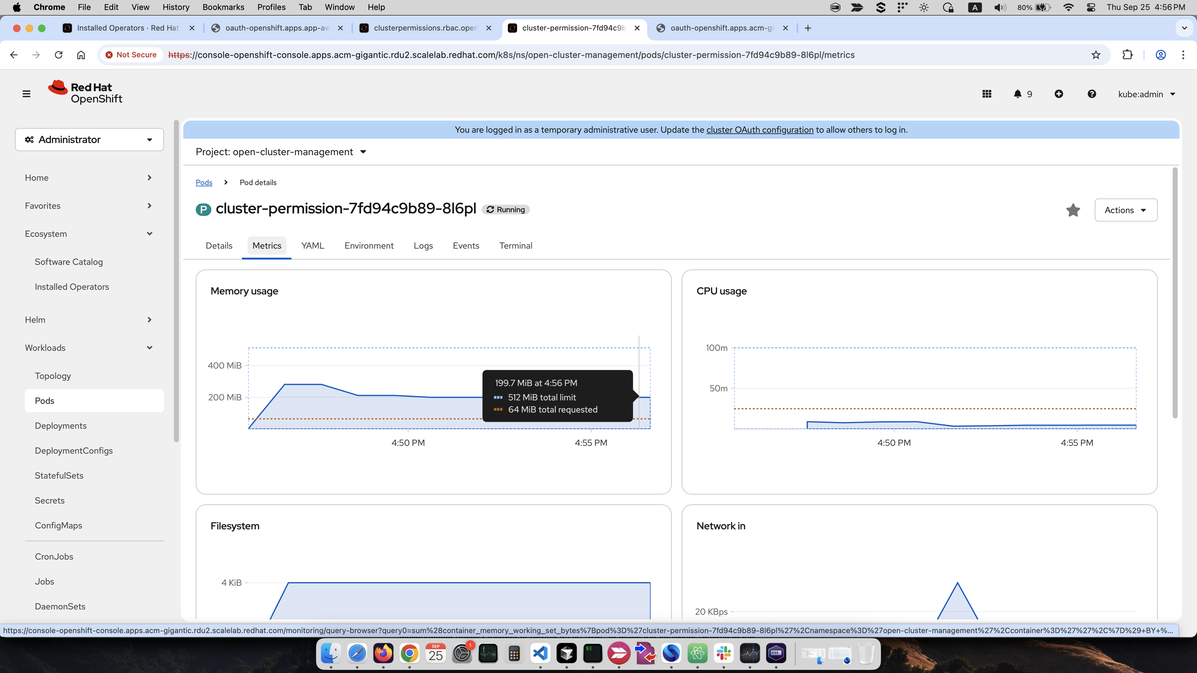 For the above bug we are able to resolve the pod OOMKill issue but the memory usage is still a little high ~200 MB even without any ClusterPermission CRs.