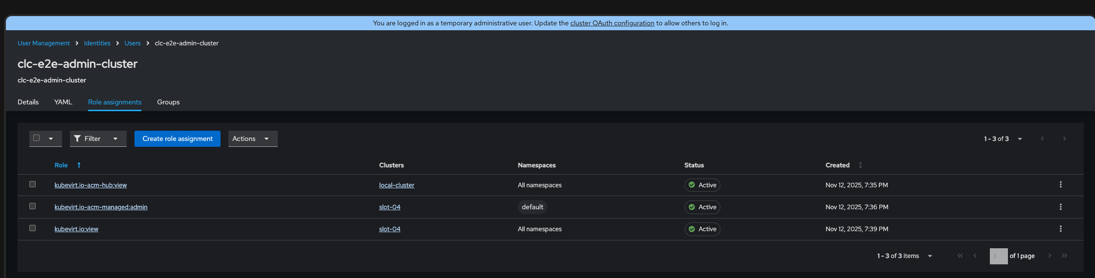 Here, kubevirt.io:view role doesn't grant secrets/configmaps access, but kubevirt.io-acm-managed:admin does, so the user should be able to see and modify those resources on the spoke.