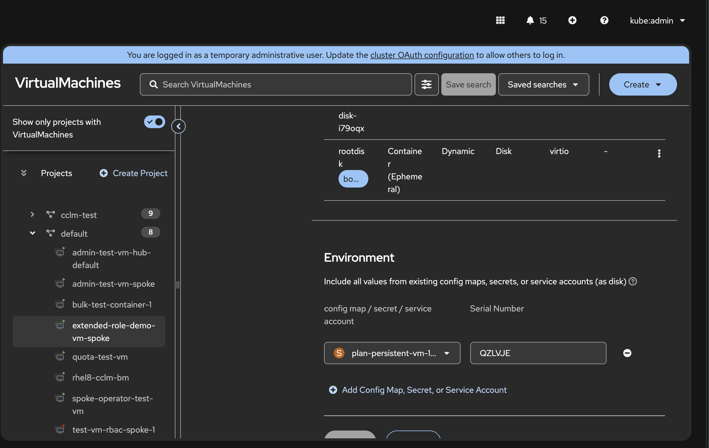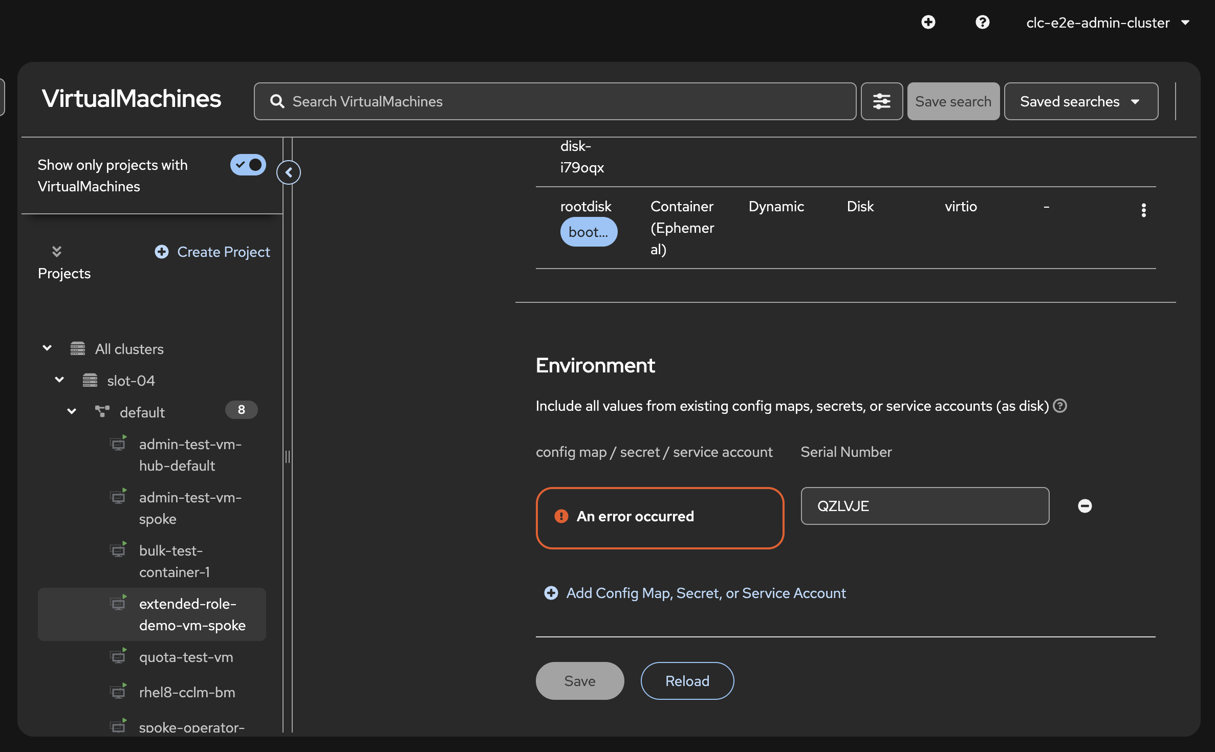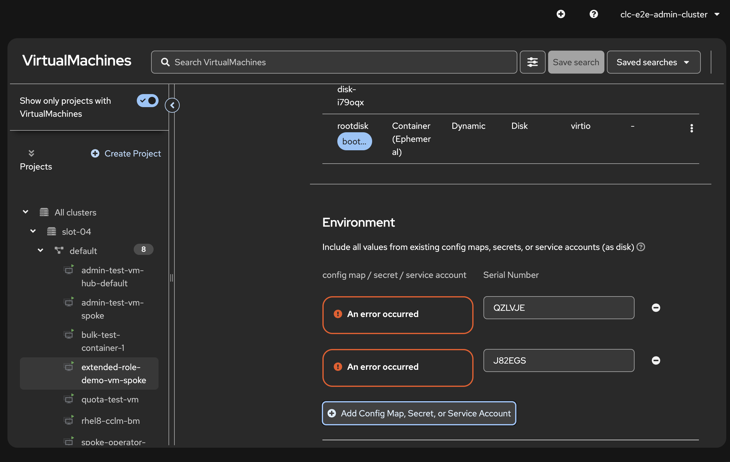 CNV-72451 VM (on spoke) Configuration tab fails to configure for secrets/configmaps on Fleet UI