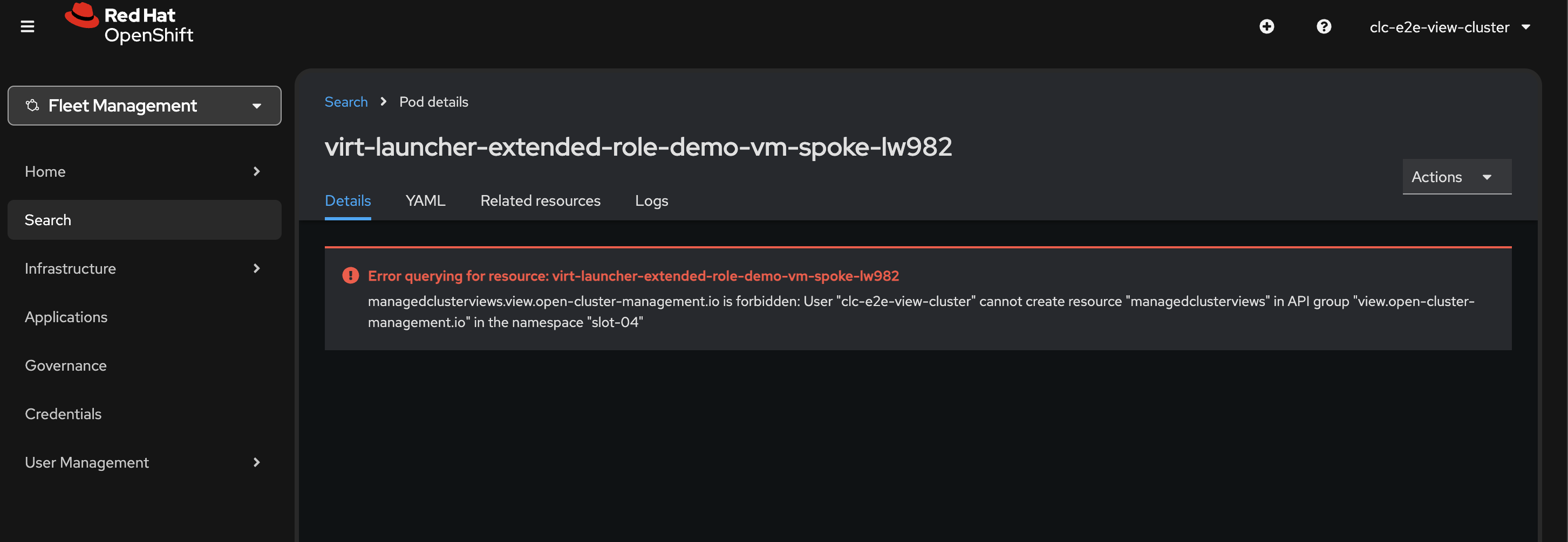 VM (on spoke): Clicking on the pod fails to open logs page (Fleet UI/rbac)