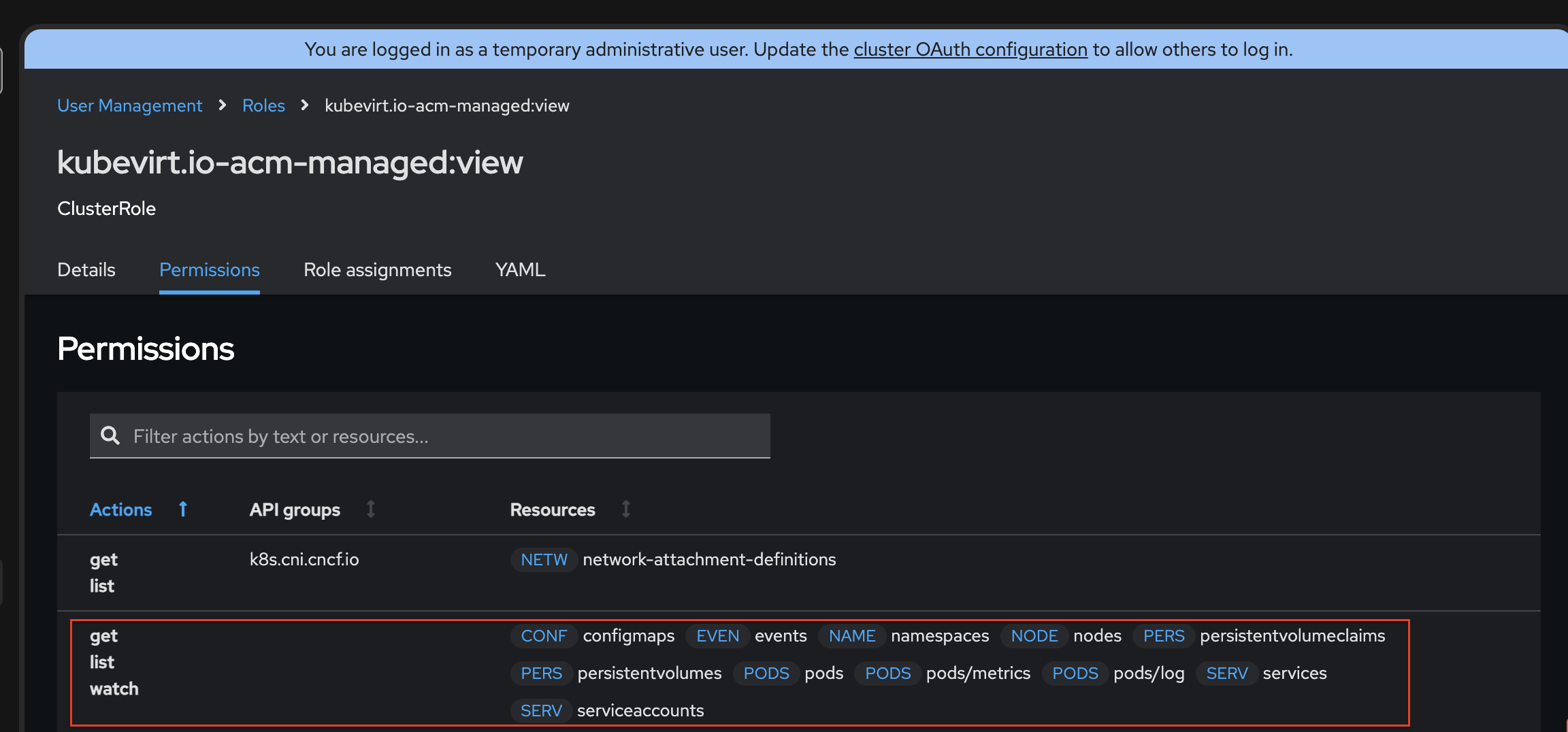 When clicking on the Pod link (on the VM - residing on the spoke - Overview page) fails to open the logs page with permission error-