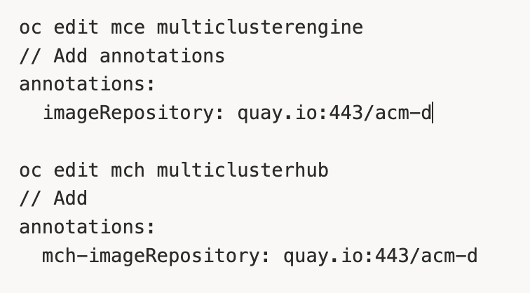oc get pods -n open-cluster-management-agent NAME READY STATUS RESTARTS AGE klusterlet-5c67f4cf9d-gf6wg 0/1 ImagePullBackOff 0 2m50s