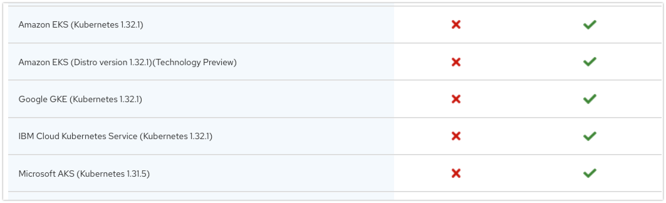 - Legit question: do we even need to do any additional testing with the EKS/AKS/GKE/IKS? Since OCP == K8S and we already test a range of 4 versions of OCP, I suspect this could be a testing no-op.
