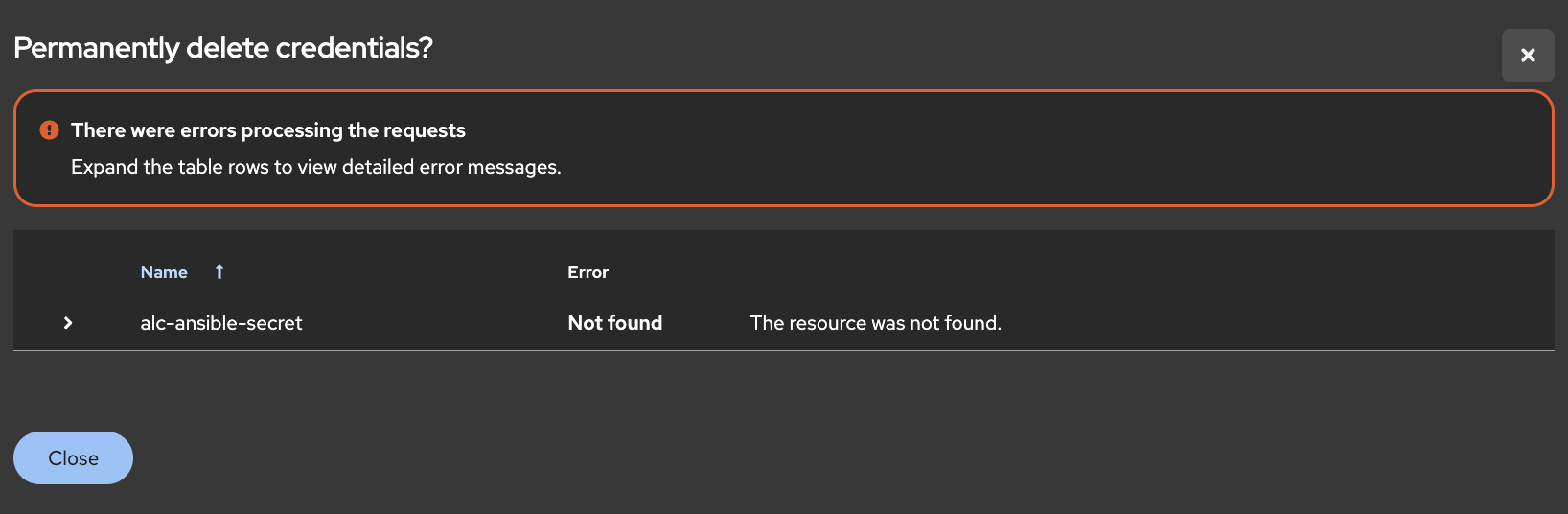 Error when deleting deleted credential from UI