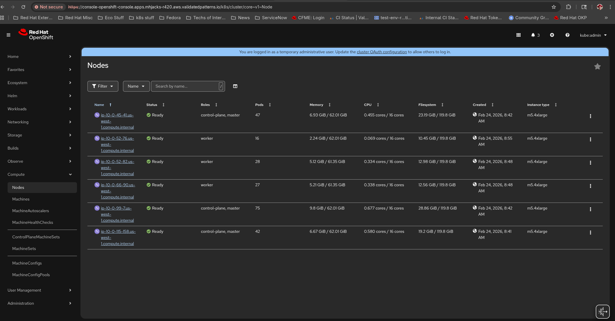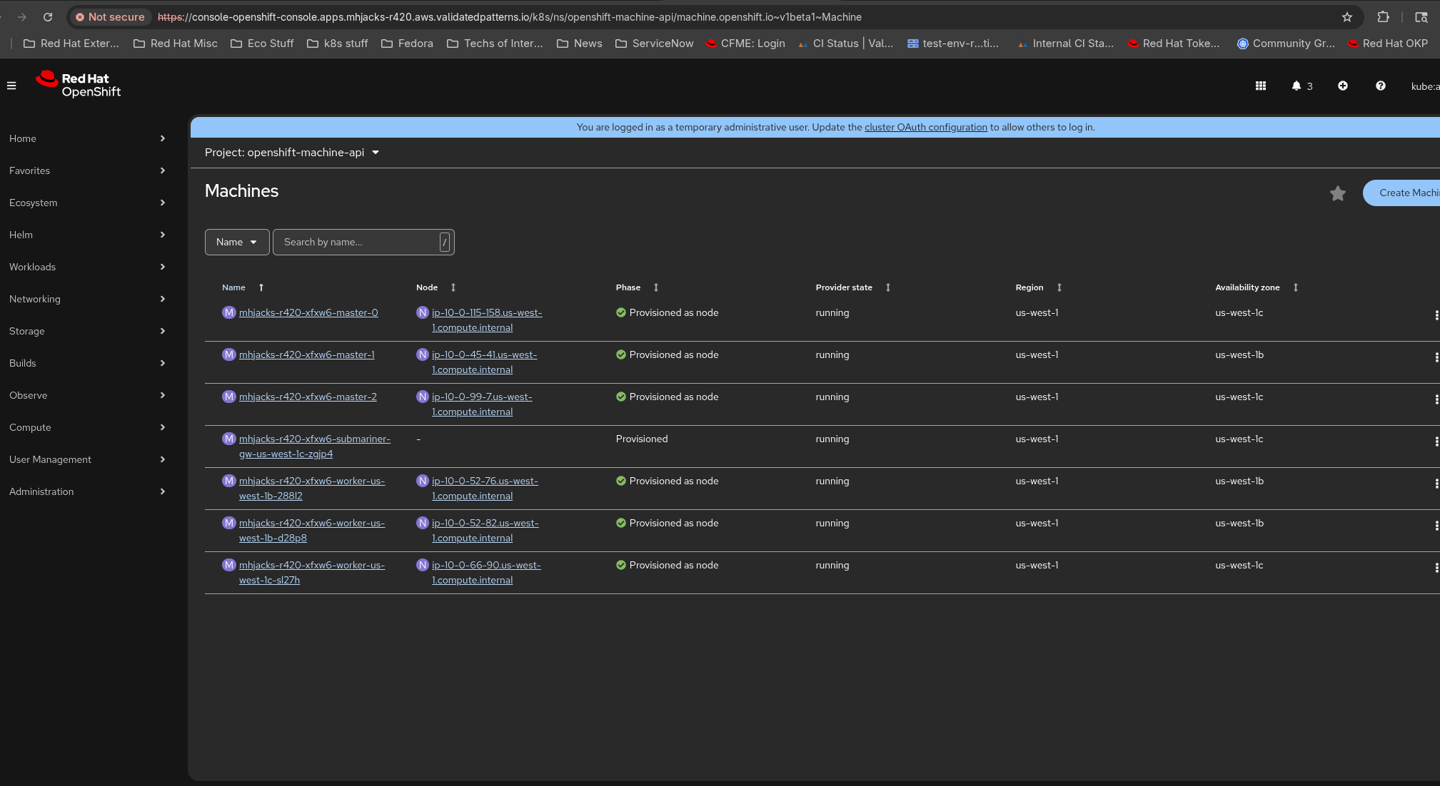 - Install OCP 4.20 cluster on AWS (I have seen it with 4.20.6 and 4.20.14)