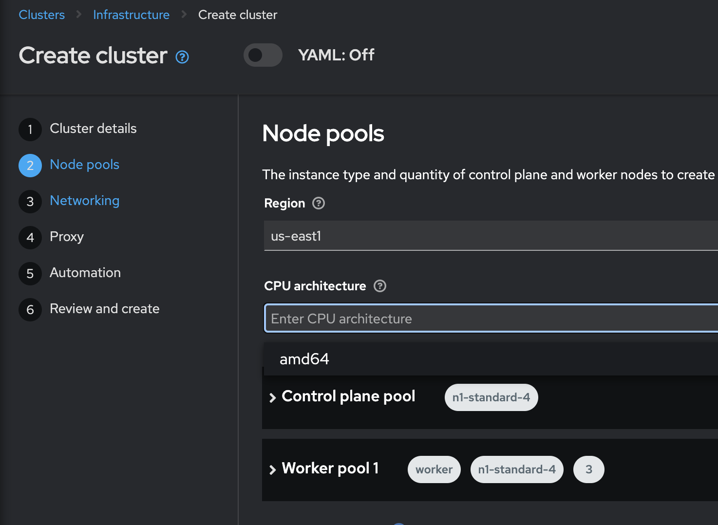 - Suggested instance types should be updated to match the same architecture selected for the managed cluster