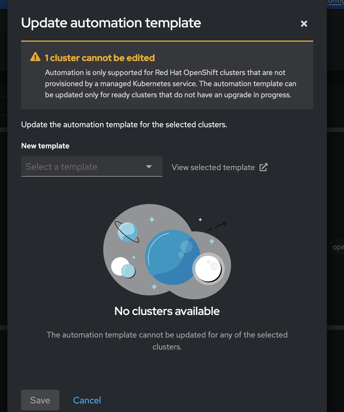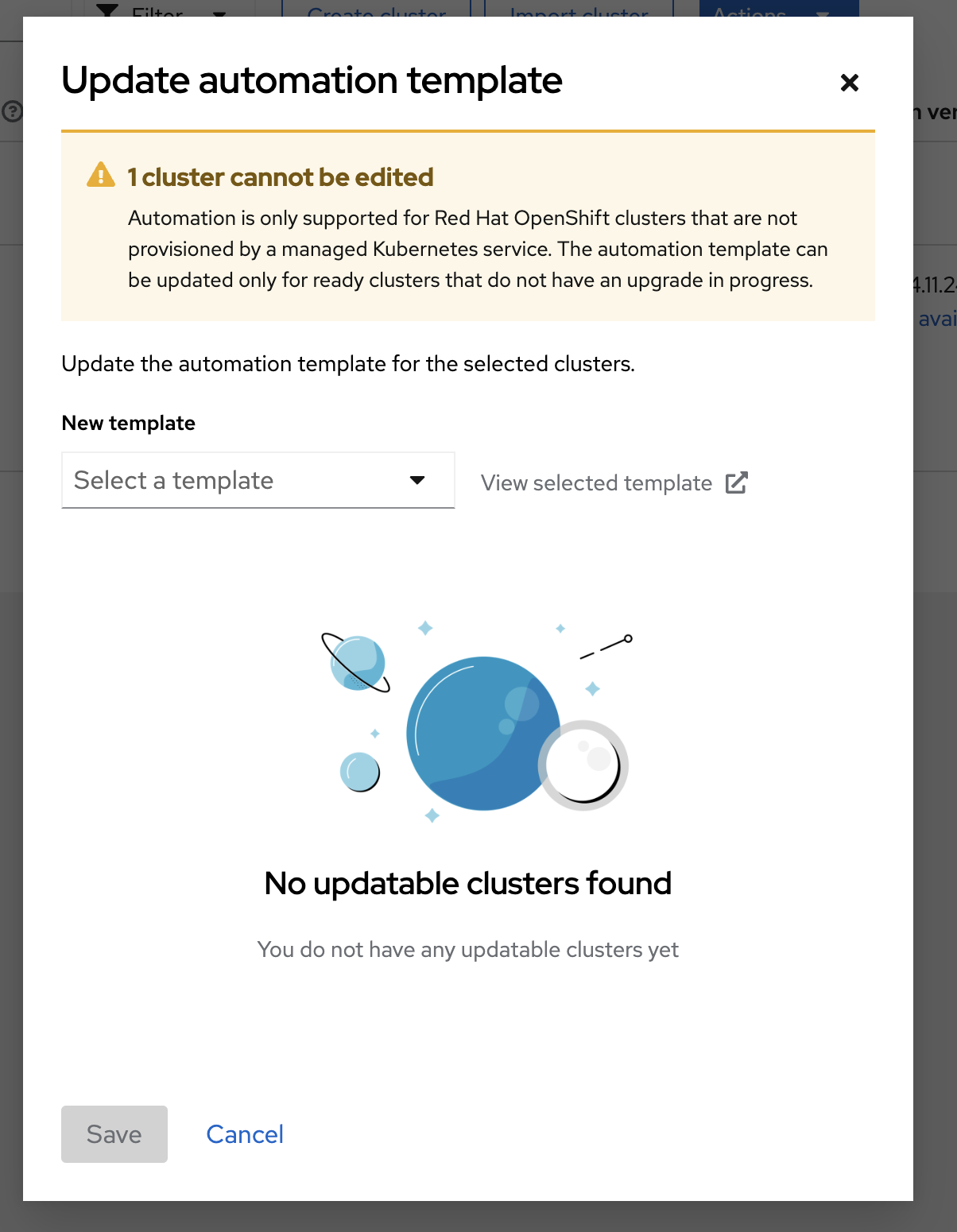 2.  Select the checkbox next to the cluster, then choose Update automation template