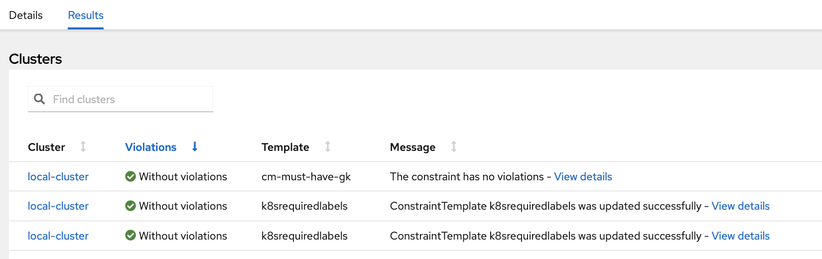 We have code that does not allow two config policies to have the same name. You can't have gatekeeper constraints with the same name either. Same for constrainttemplates. You can have a constraint and constraint template that have the same name. In that case the status is being returned, but it's not correct.