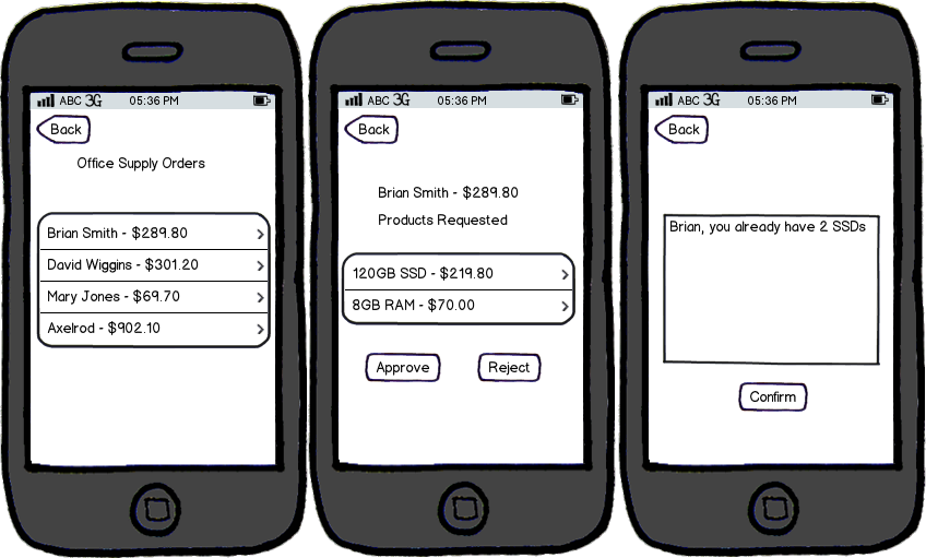 We should have an example that shows a mobile workflow for purchasing "things", and approving orders based on server-side rules. This would make a multi-person demo where people "sign-in" as either a buyer, or approver.
