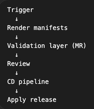 The generated manifests are committed automatically as a Merge Request in the aipcc-product-management-configs repository. This acts as a validation and control layer where changes are visible and traceable.