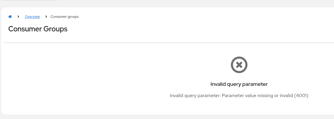 When there are 20+ consumer groups, and the user clicks on the right arrow in the bottom right to continue browsing the next consumer groups, you get an error