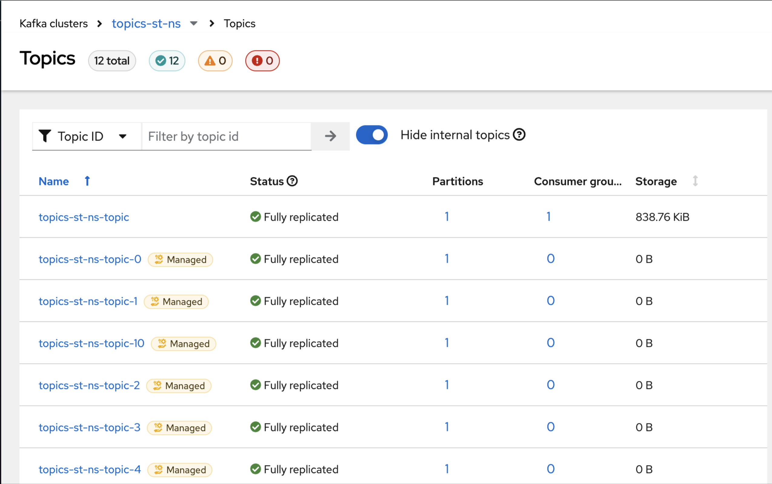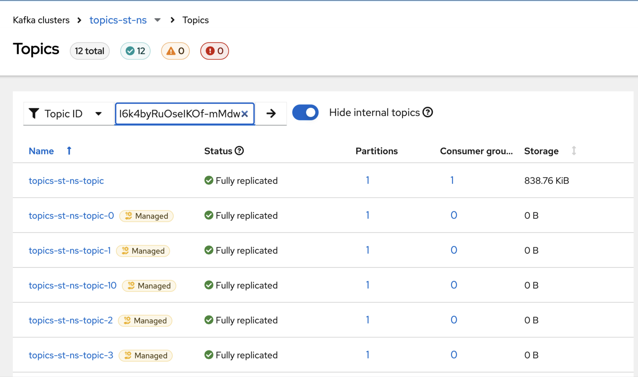 Currently it is not possible to find KafkaTopic with it's ID on Topics page. After hitting the right pointing arrow button in the search area, the text with ID disappears but all topics are present - none are filtered.