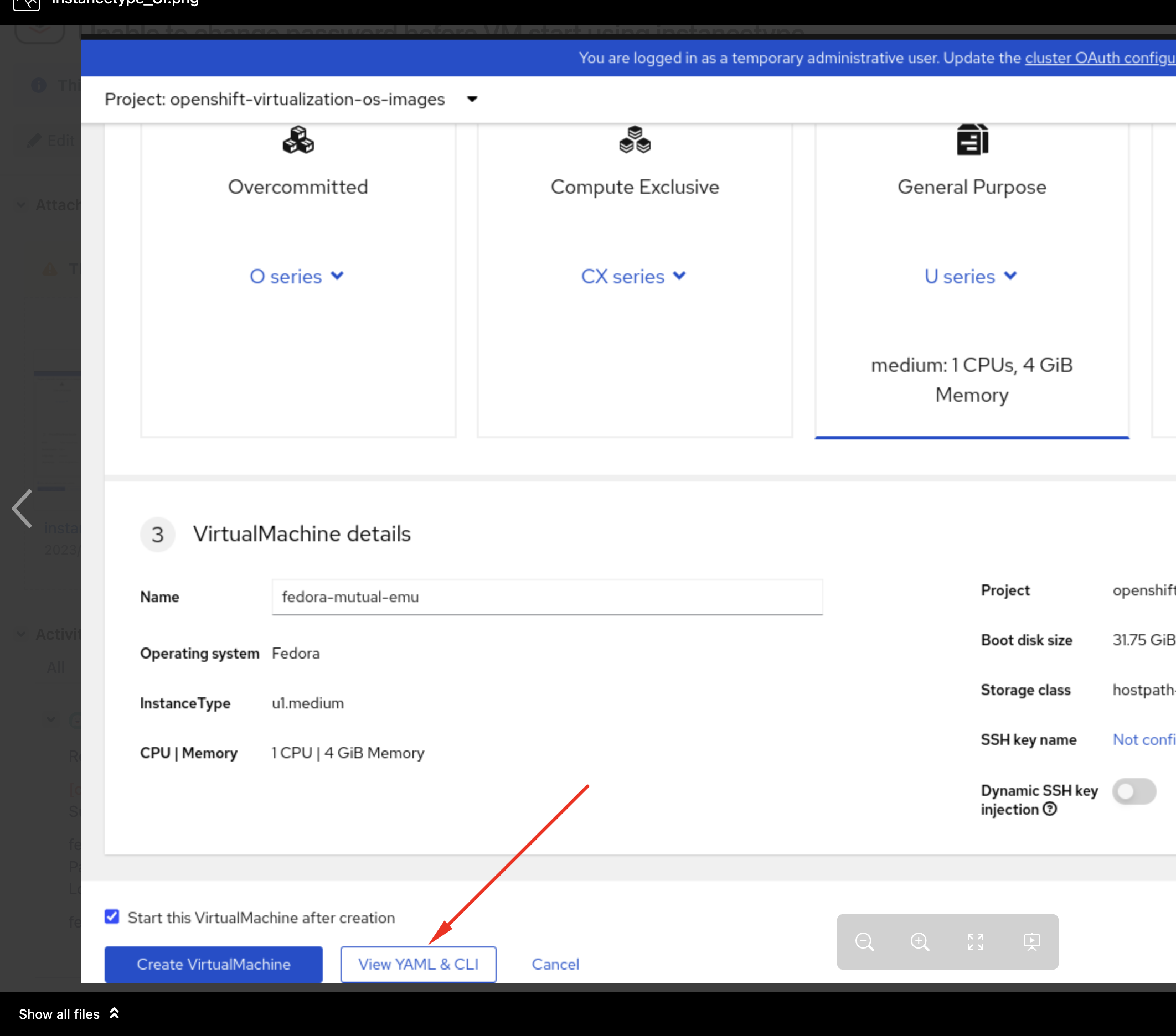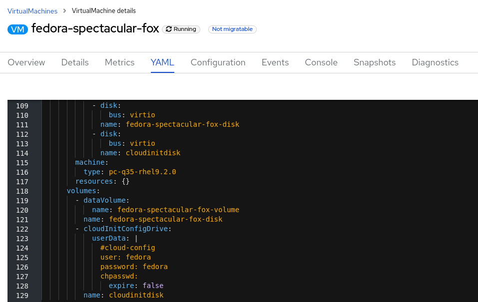 While testing Ui, i saw that in UI we have the option to customize and using which we can change password/username if we choose template but while creating VM from instancetype i don't see this option to change username/password before the VM starts and somehow even after starting VM i see issues with changing password. I started VM and then from yaml i try to change password and restart the VM from UI. After this i try to connect using virtctl and it didn't work