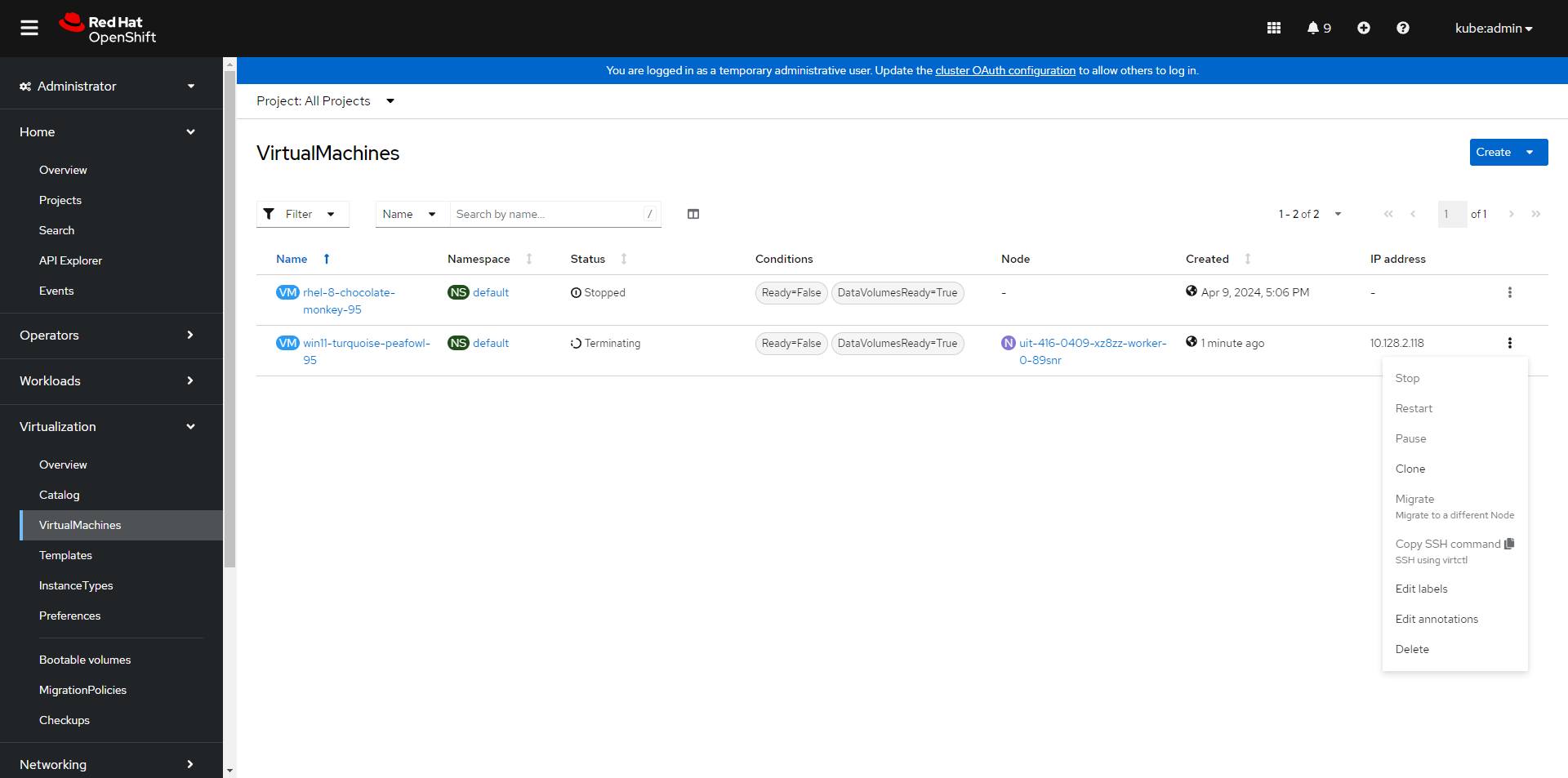If a VM is stuck in terminating state there is no way to force the shutdown. Force shutdown is only available if the VM is stopping