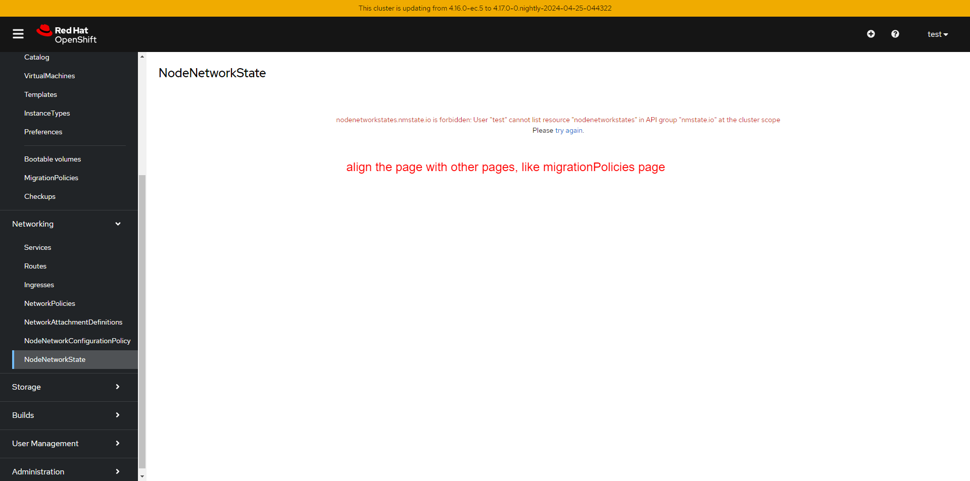 Align the NNS page with other pages for regular user, good example: migrationPolicies page