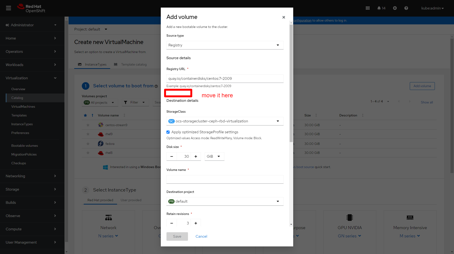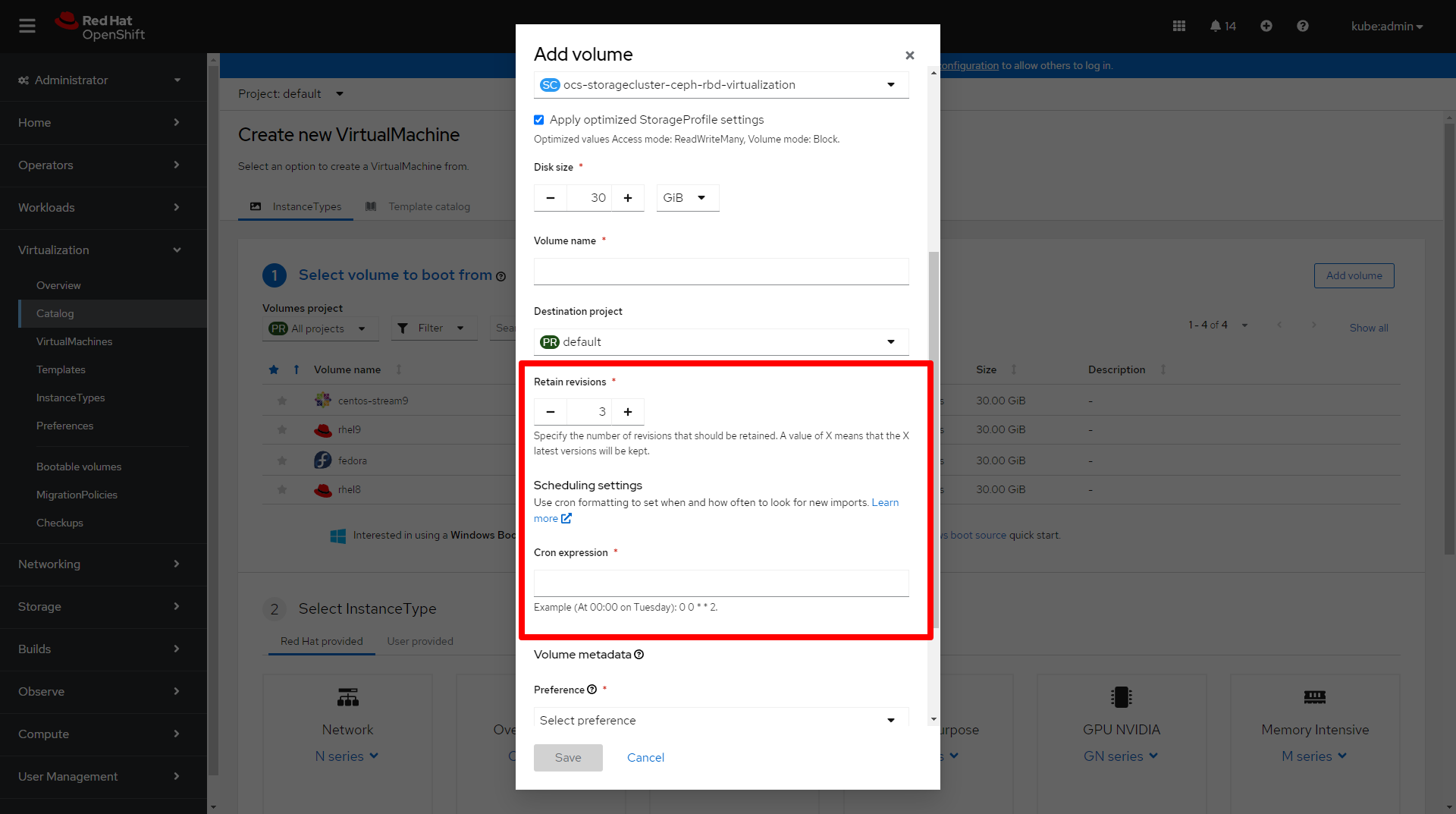 Select registry in add volume modal, the config is separated, the "Retain revisions", "Scheduling settings" and "Cron expression" is not appearing just under "Registry URL".