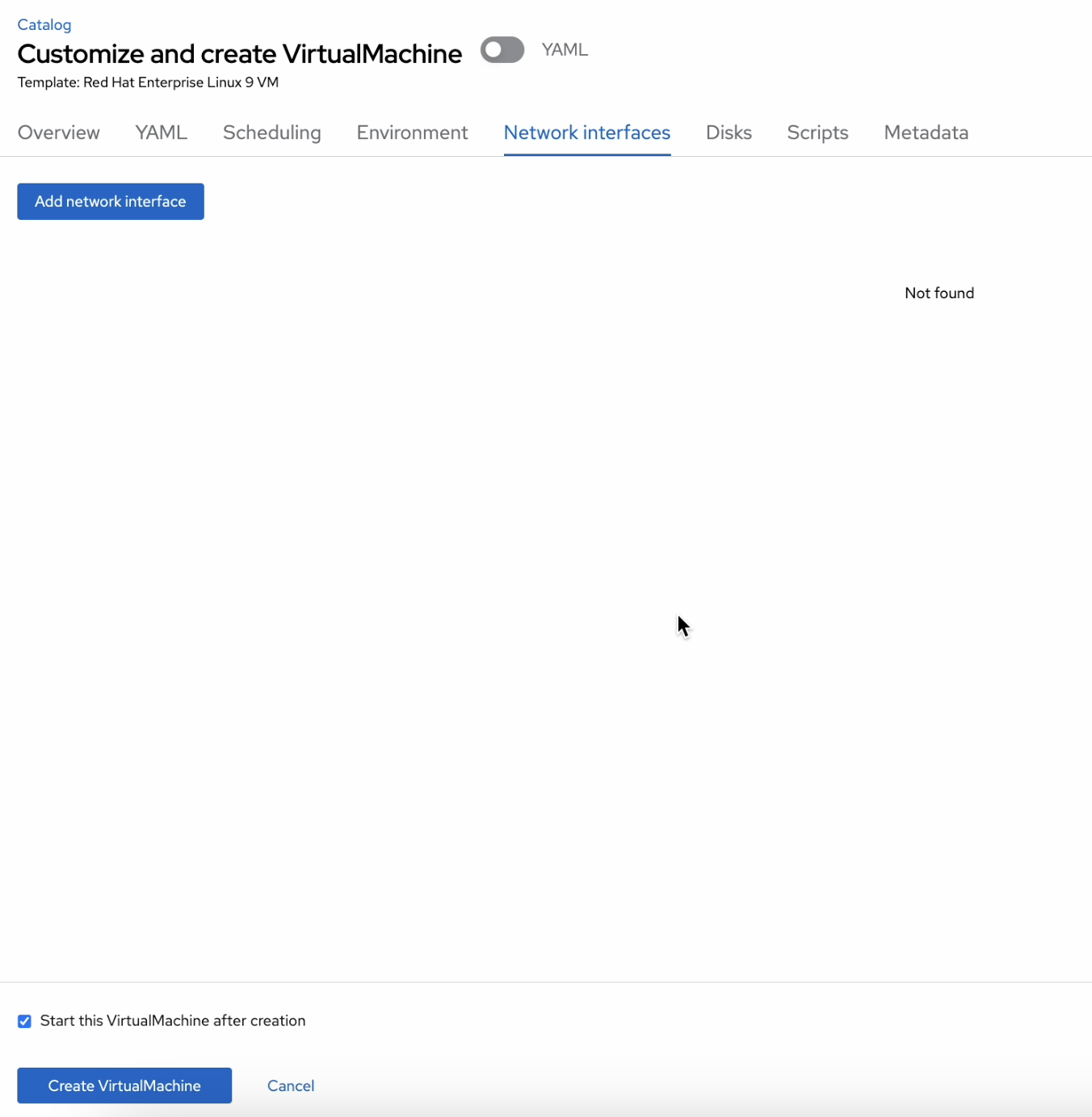 Cannot create a vm with no network interface attached