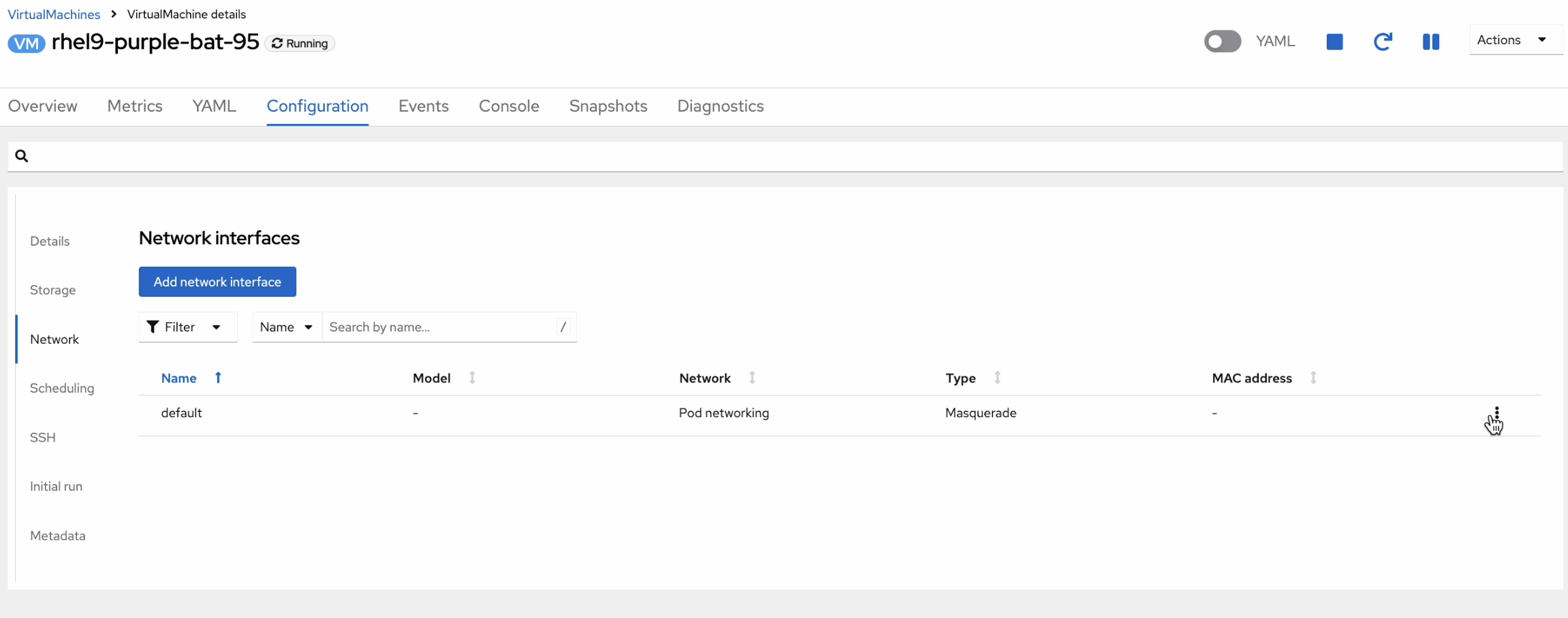 Pod network is auto attach with no mac address and model