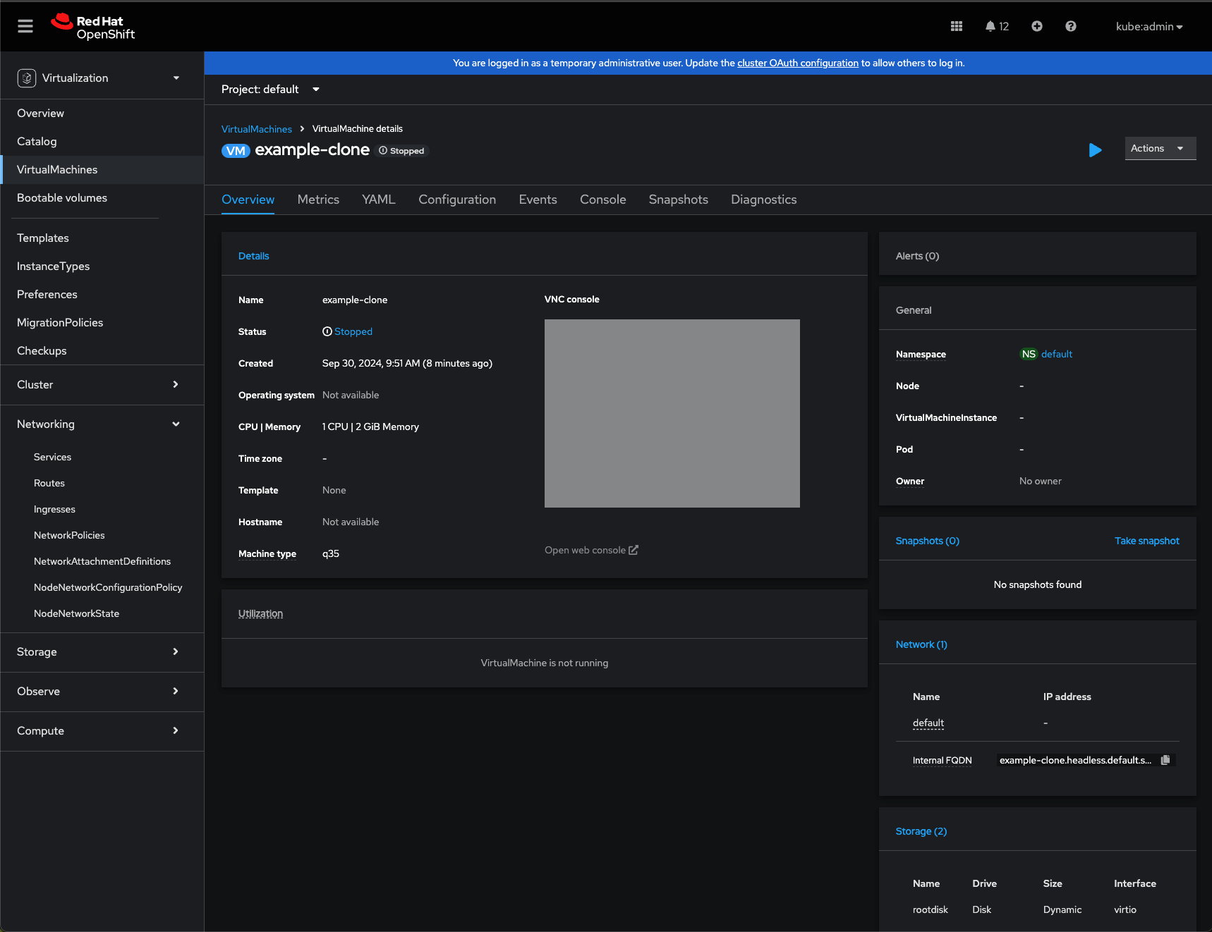 The cloned VM does not start, despite checking "Start VirtualMachine once created"