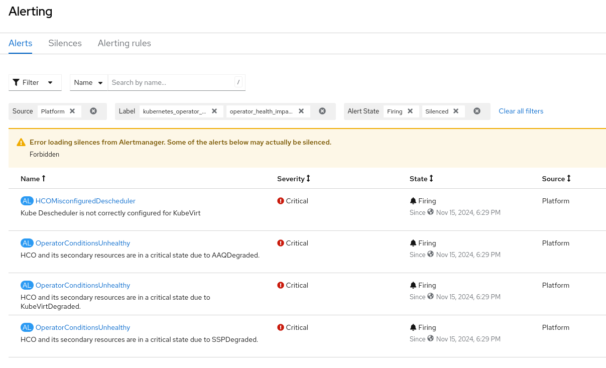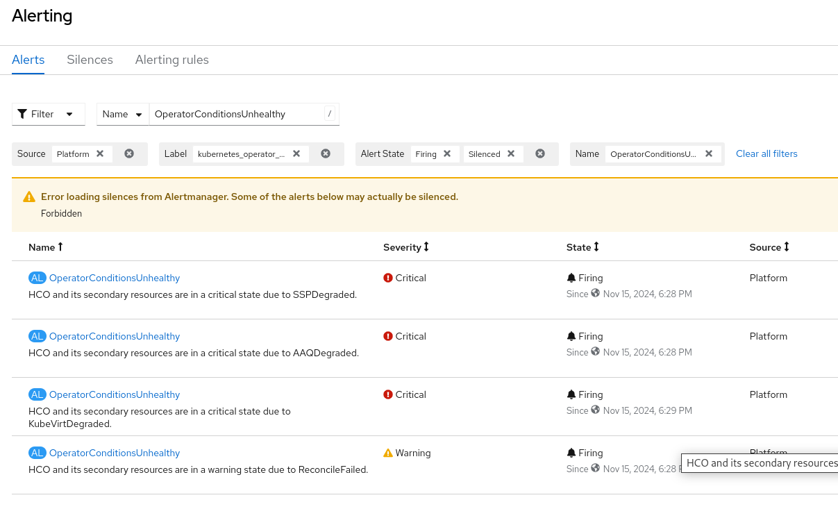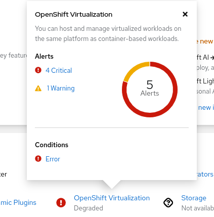 CNV-51311 The error in conditions of Openshift Virtualization is not useful while comparing to the critical in alerts