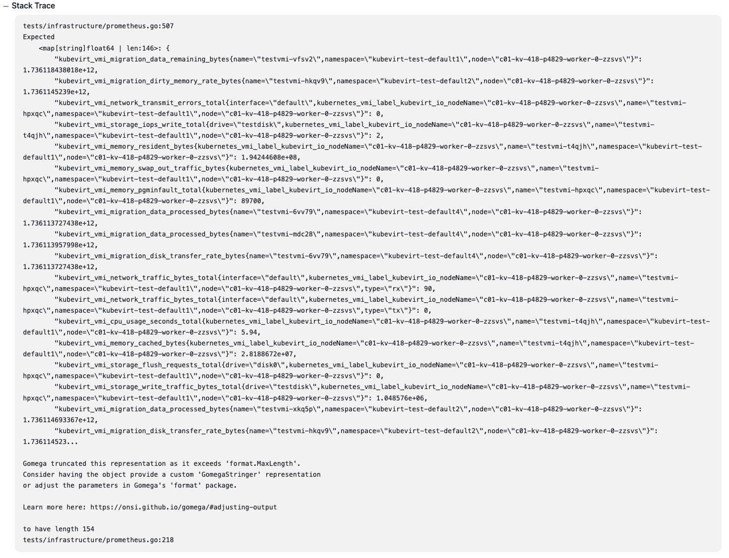 Gomega truncated this representation as it exceeds 'format.MaxLength'. Consider having the object provide a custom 'GomegaStringer' representation or adjust the parameters in Gomega's 'format' package.