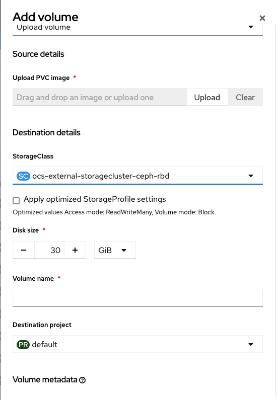 While uploading volume, the storage profile settings cannot be optimized based on the storage class even if the checkbox is unchecked.
