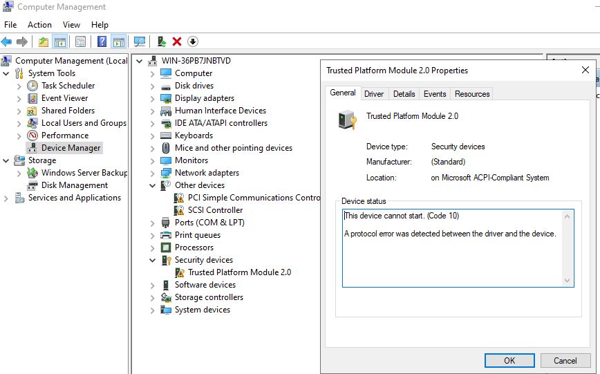4) Login to VM, there is tpm device and the device cannot start as tpm don't work with bios.