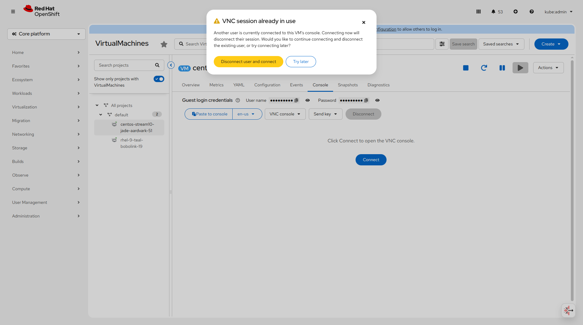 CNV-66115 Make the user aware that the new VNC connection might drop an existing one