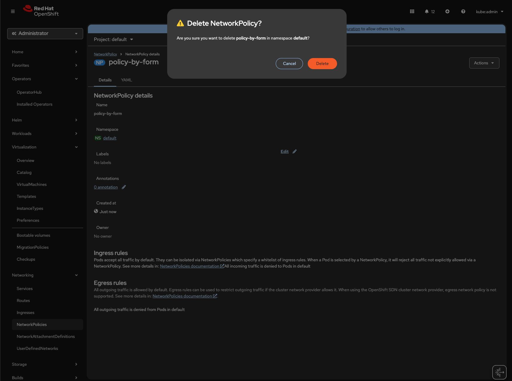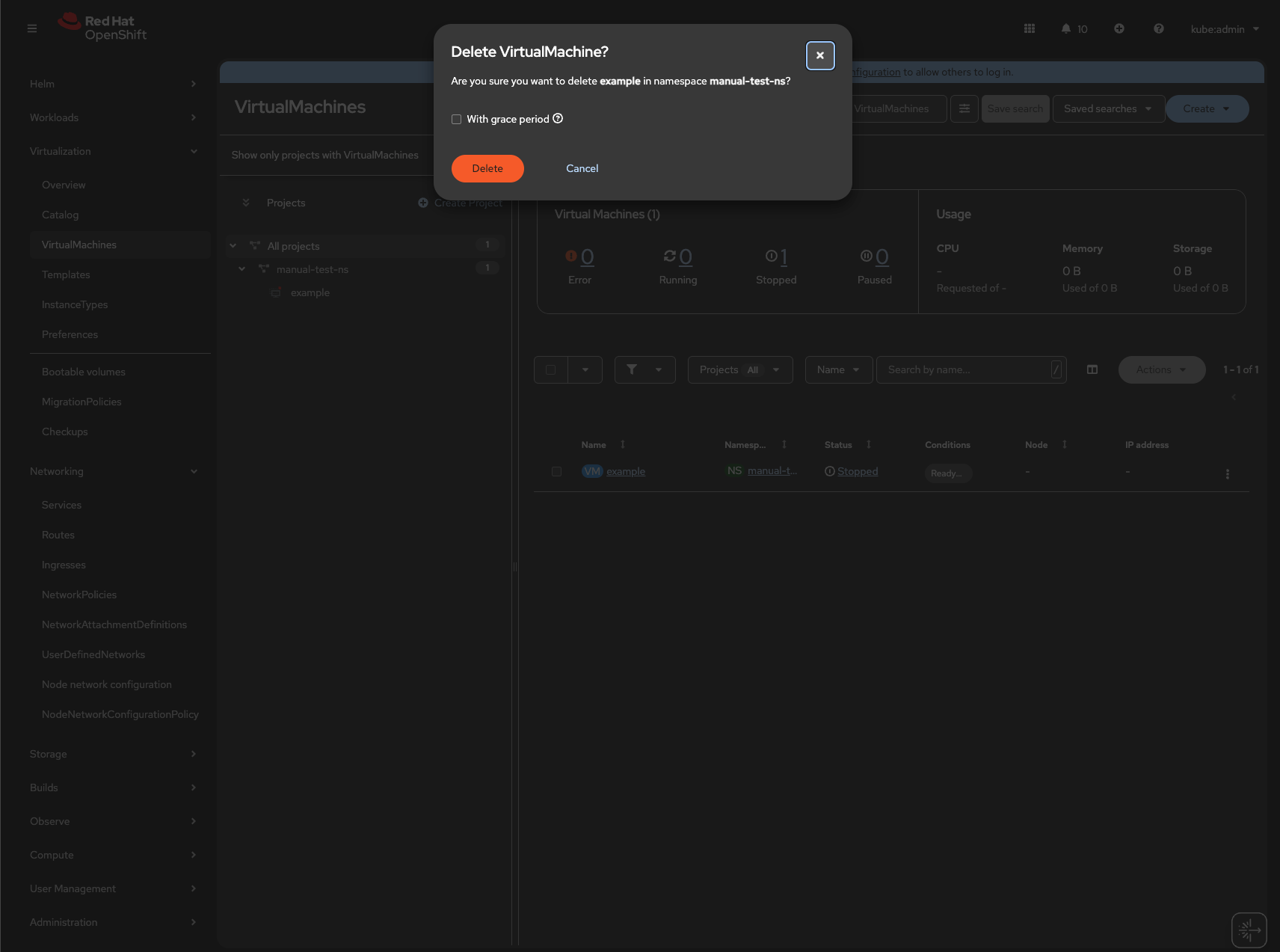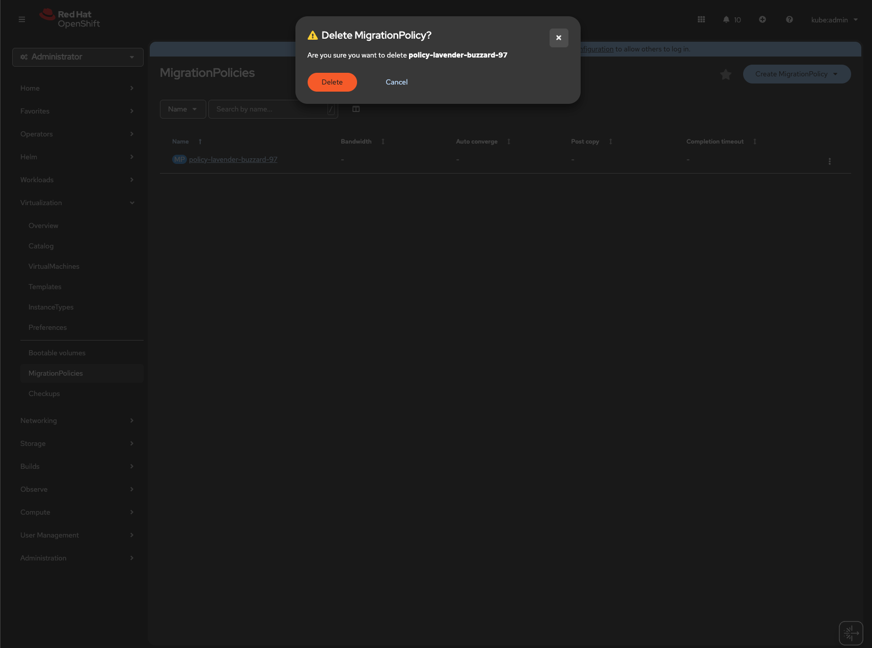 The deletion dalogs are right-aligned in Virtualization. Also all deletion dialogs should have warning signs, like in "Delete MigrationPolicy"