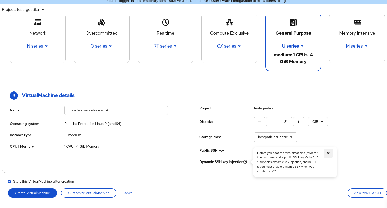 1. See https://docs.redhat.com/en/documentation/openshift_container_platform/4.18/html-single/virtualization/index#virt-editing-vm-dynamic-key-injection_dynamic-key 2. 3.