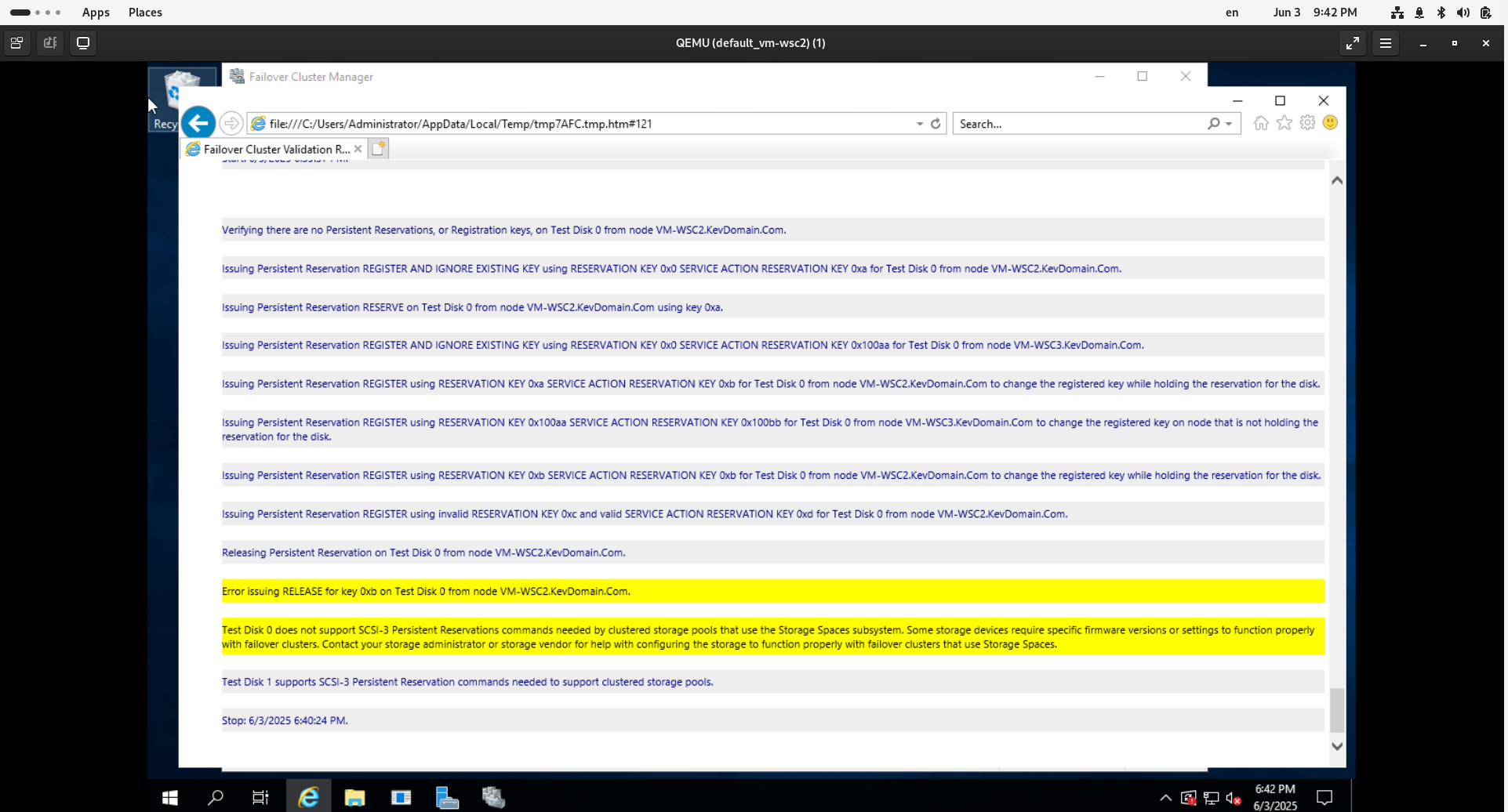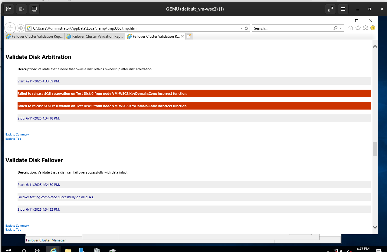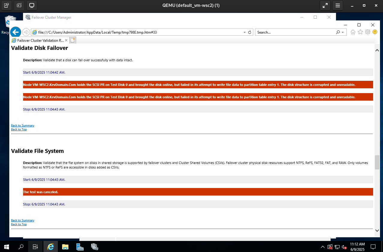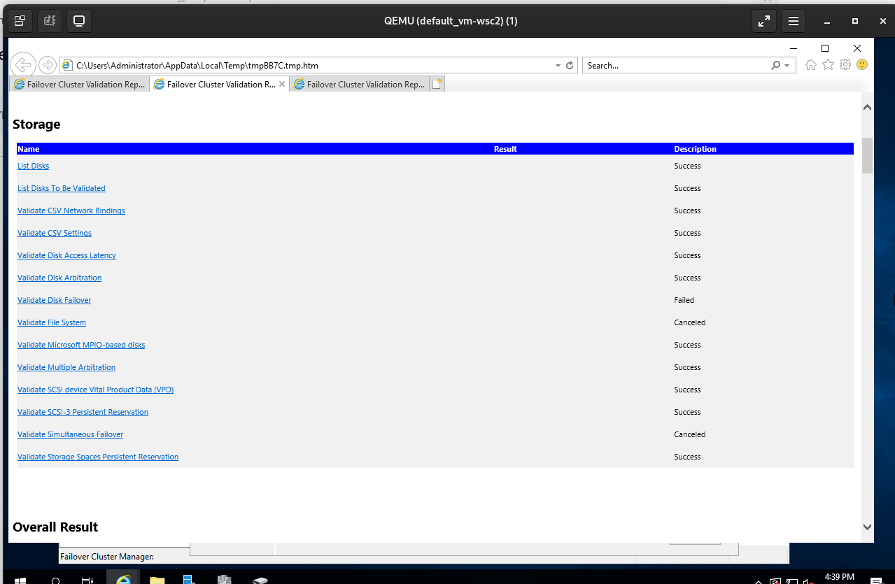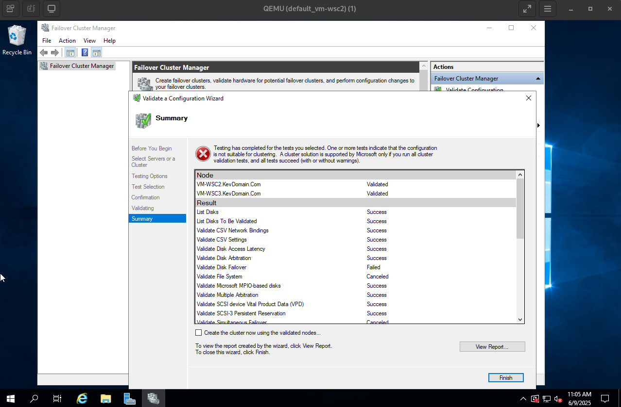 Test the the WSFC validation passed