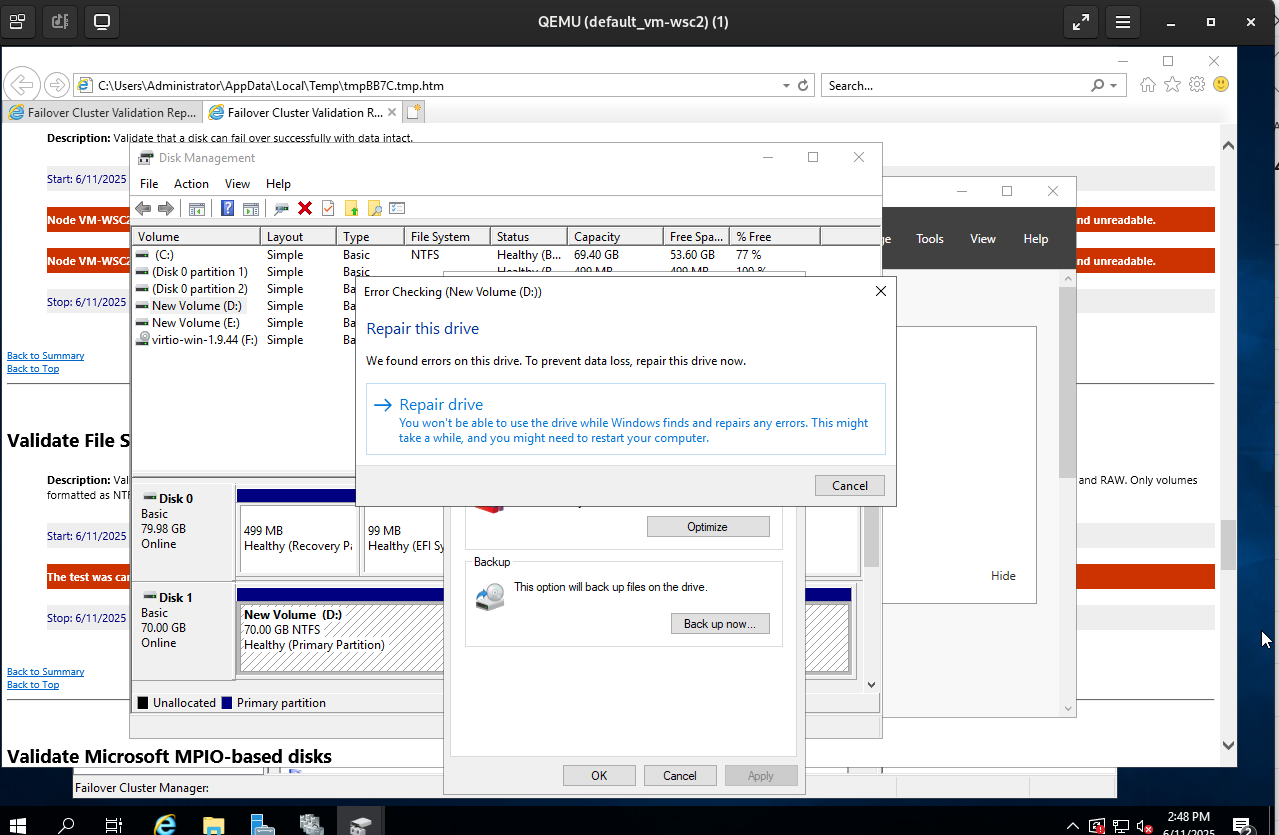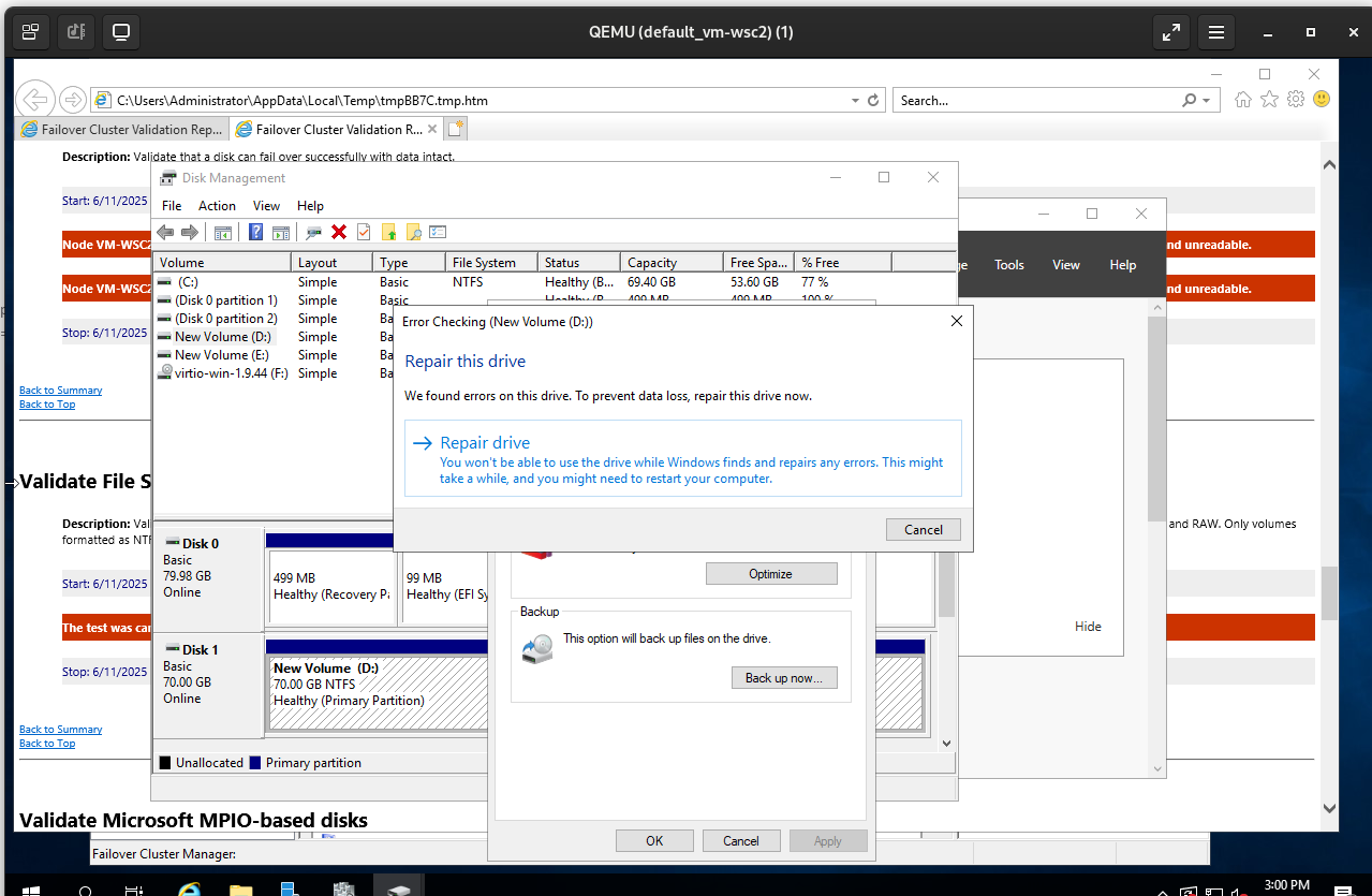 Test creating the WSFC cluster
