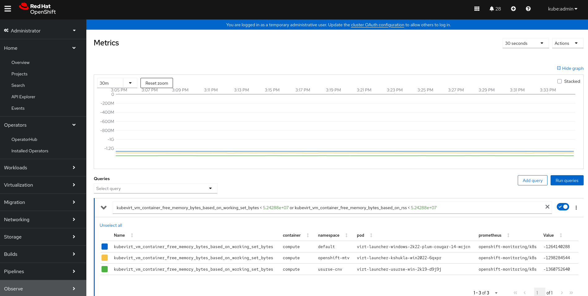 KubevirtVmHighMemoryUsage Jun 10, 2025, 10:56 PMContainer compute in pod virt-launcher-vm_name-2k19-d9j9j in namespace vms-cnv free memory is less than 50Mi and it is close to requested memory