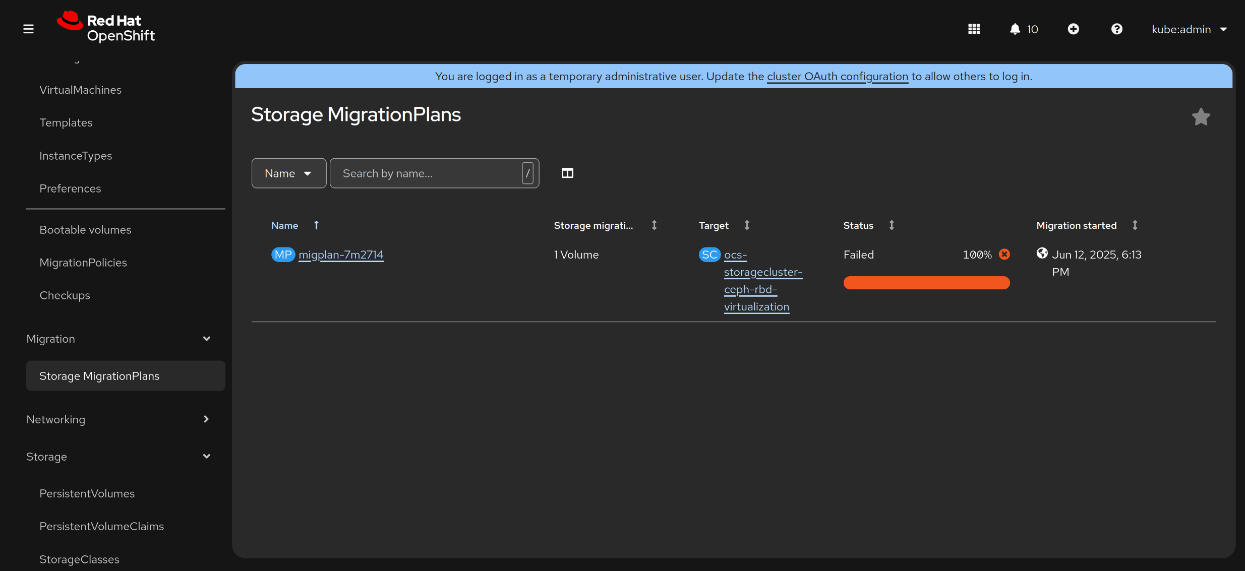 migration plan is marked failed